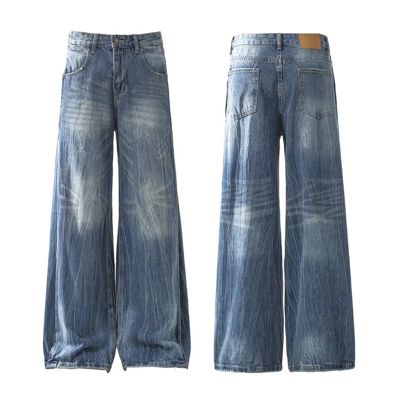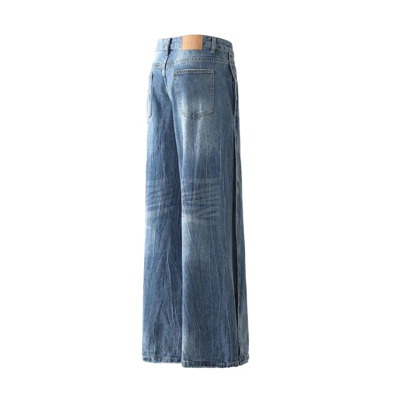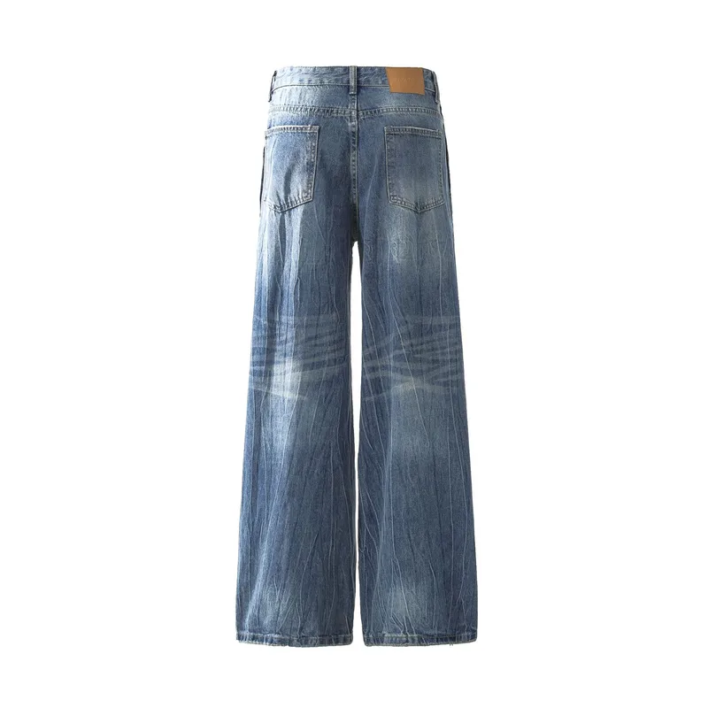 Jiayiku Men's New American Style Vintage Washed Spray Maliu Micro-La Jeans Men's And Women's Loose Straight Pants