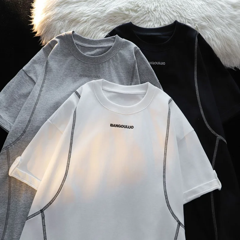 Jiayiku Men's New Summer New Niche Personality Quilting Design T-shirt Short Sleeve Trendy Men's Functional Style