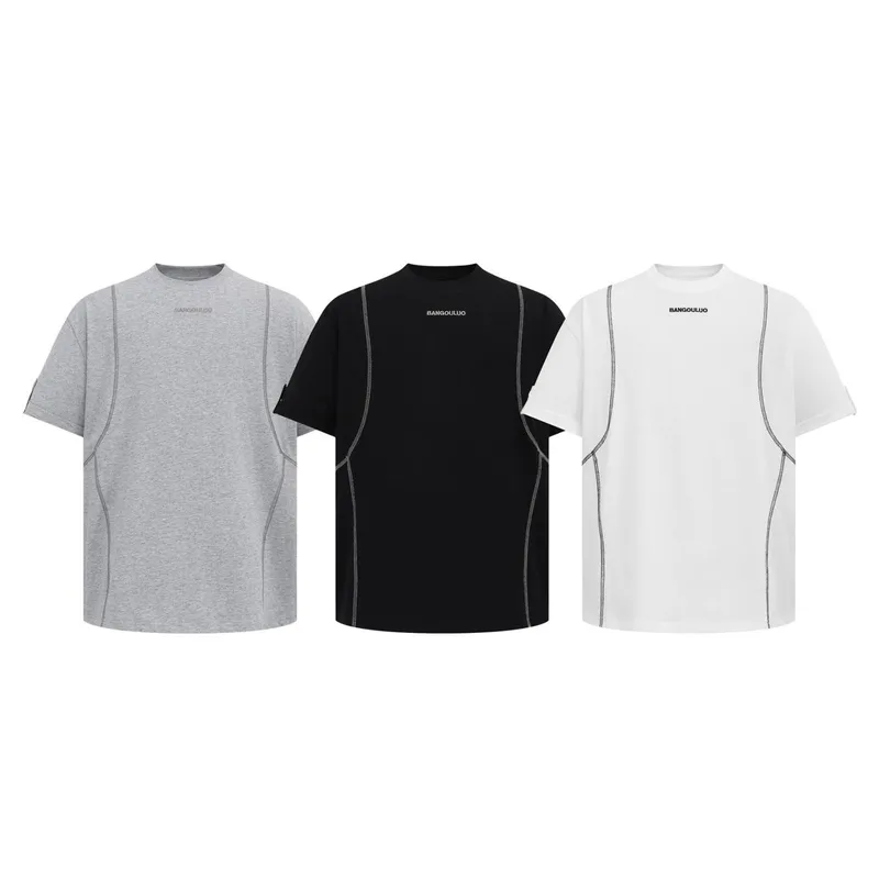 Wholesale Jiayiku Men's New Summer New Niche Personality Quilting Design T-shirt Short Sleeve Trendy Men's Functional Style
