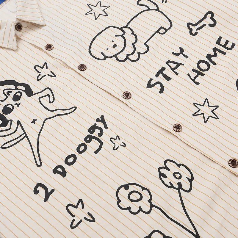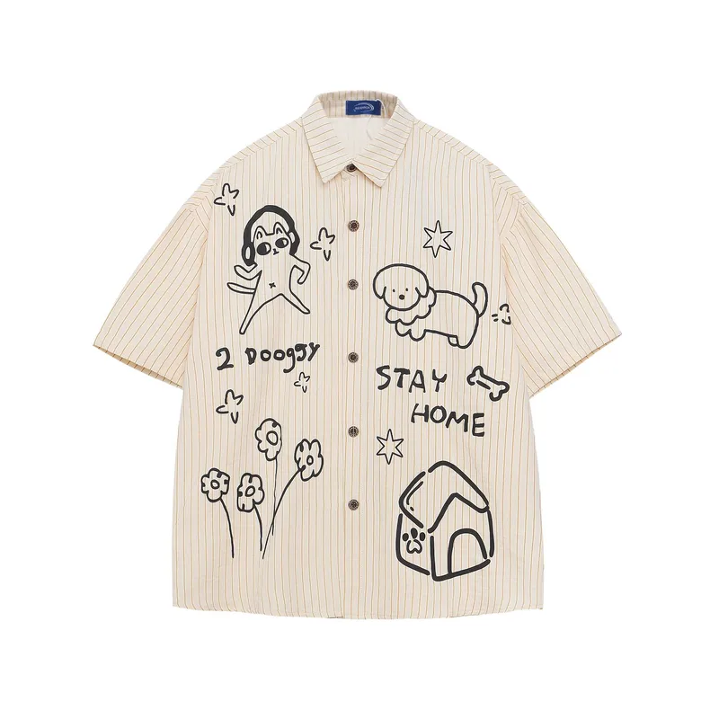 Jiayiku Men's Summer American Vintage Ins Trendy Fun Graffiti Striped Shirt Casual Shirt For Men And Women