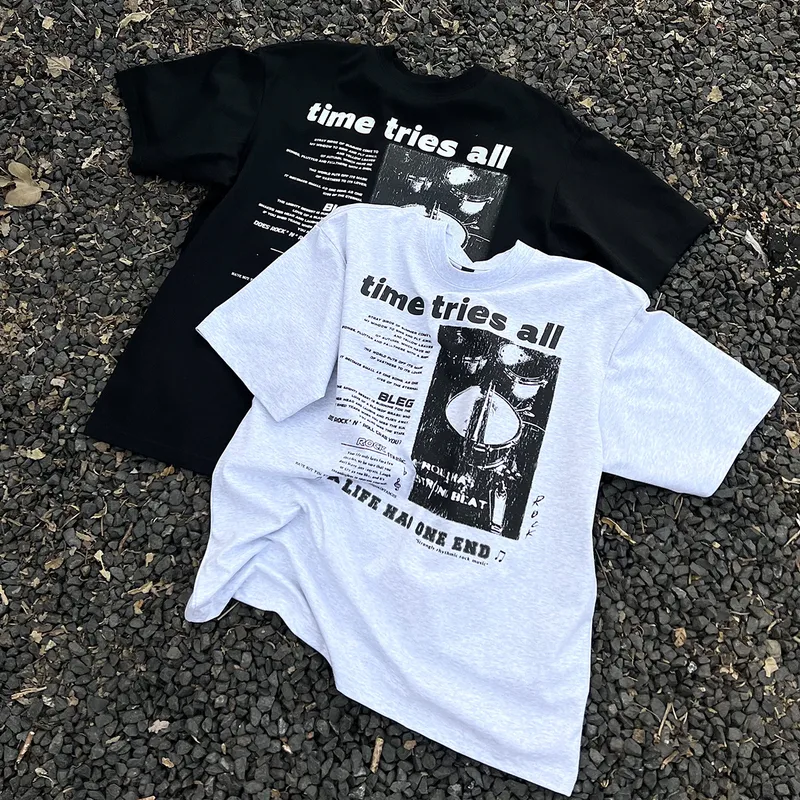 Jiayiku Men's Summer New American Retro Fashion Brand Rock Culture Shirt Dark Print Short-sleeved T-shirt