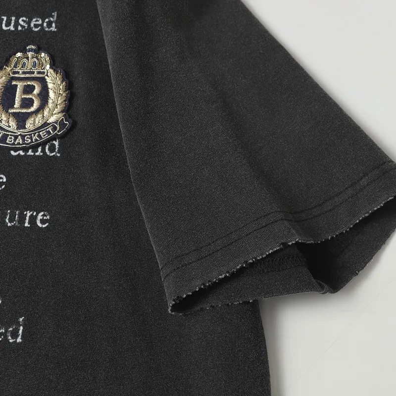 Jiayiku Men's Summer New American Retro Trendy Brand Fake Two-piece Badge Embroidered Washed T-shirt Short-sleeved