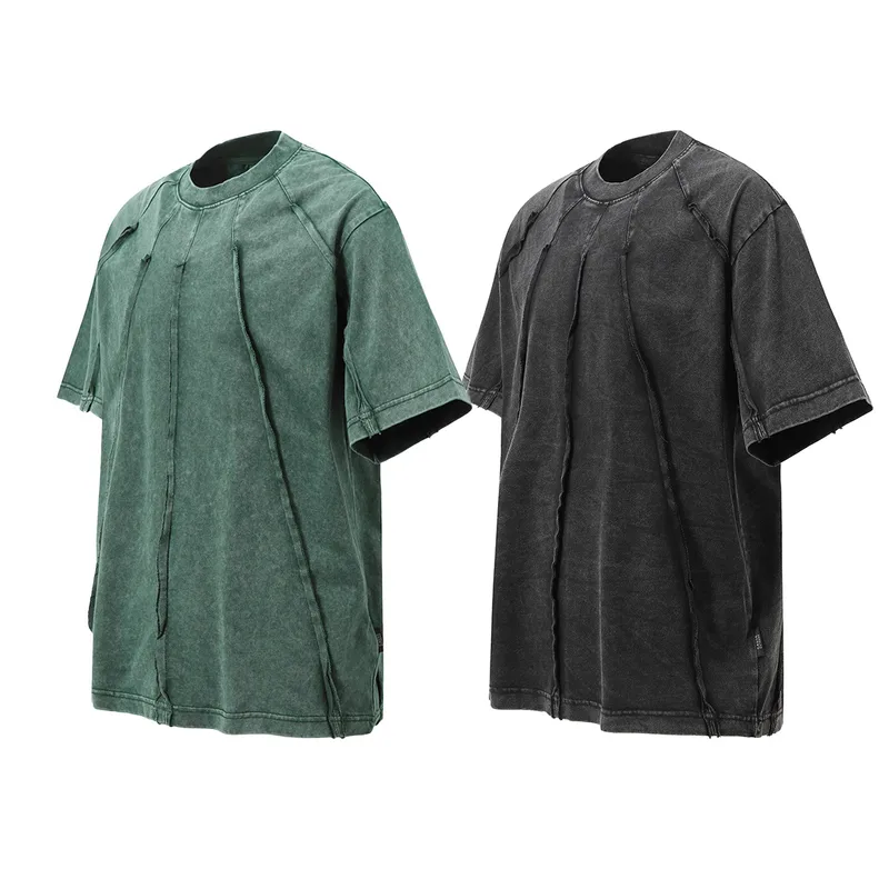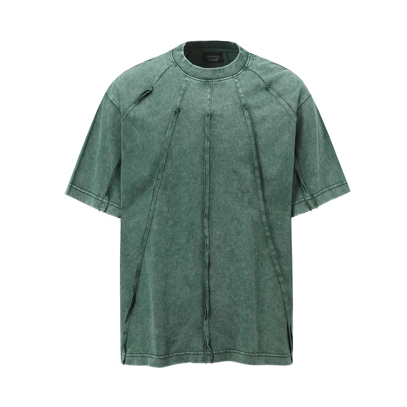 Wholesale Jiayiku Men's Summer New American Retro Trendy Brand Heavy Washed Rough Edge Stitching T-Shirt Short Sleeve Men