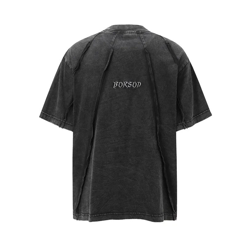 Jiayiku Men's Summer New American Retro Trendy Brand Heavy Washed Rough Edge Stitching T-Shirt Short Sleeve Men