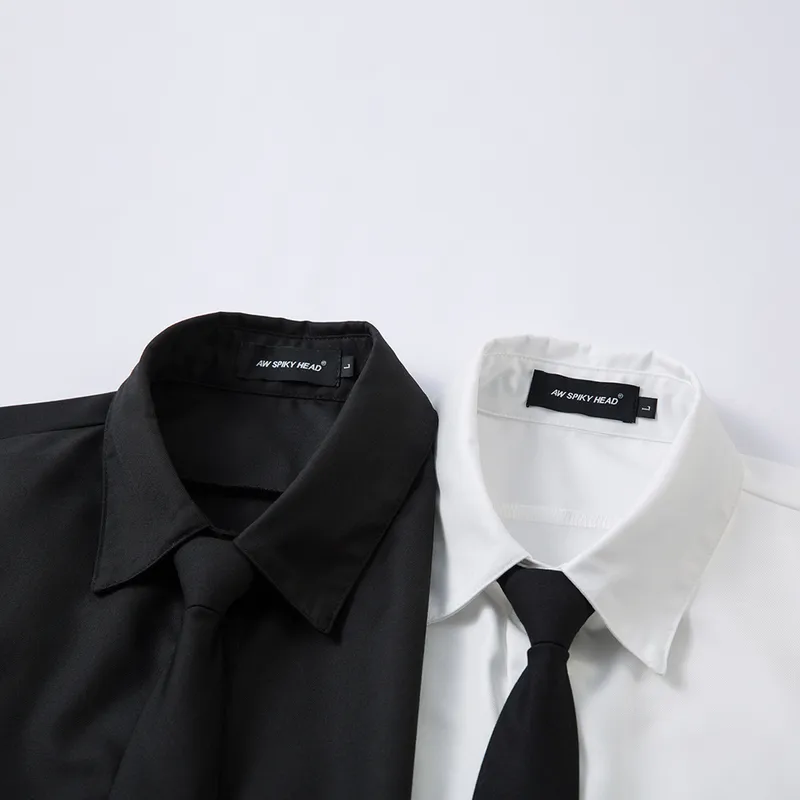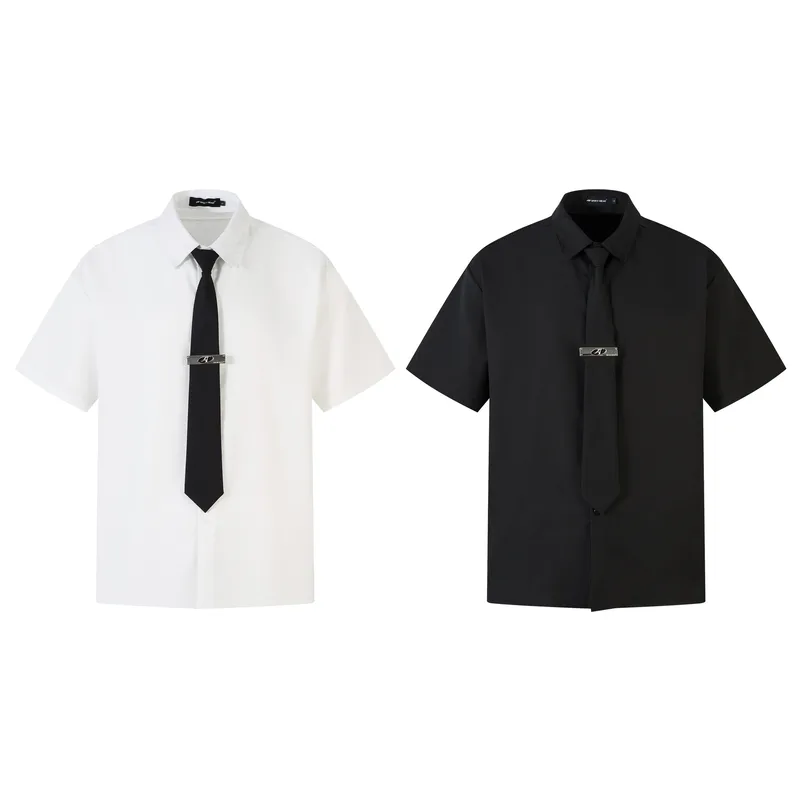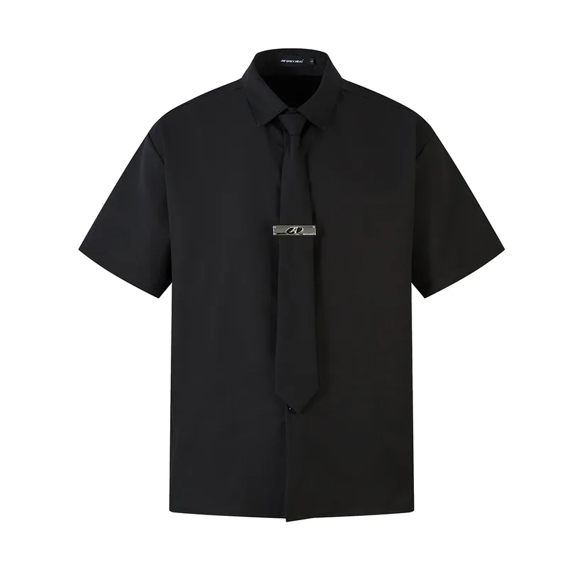Jiayiku Men's Summer New Style Simple Niche Tie Design Sense Short-sleeved Shirt Men's Ins Fashionable And Handsome