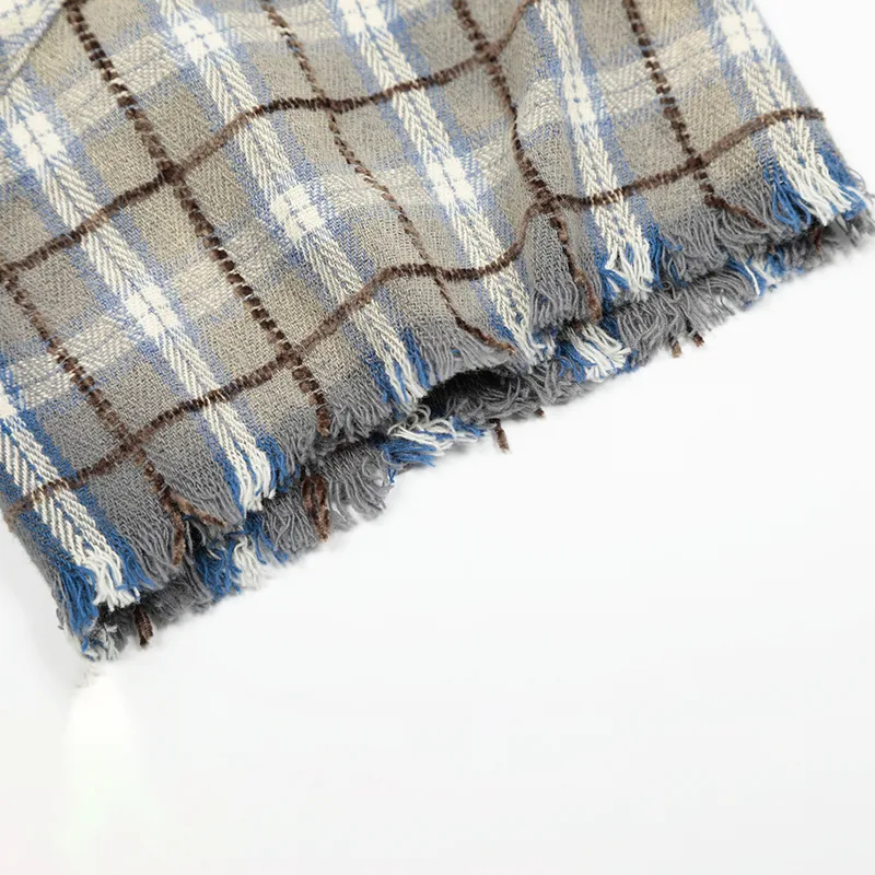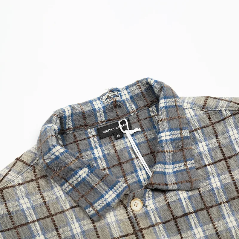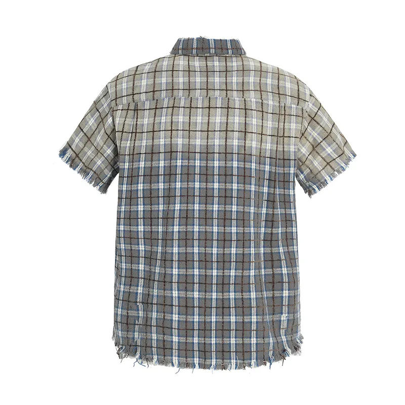 Wholesale Jiayiku Men's Summer Shirt Men's American Style Retro Ins Trendy Gradient Washed Rough Plaid Shirt
