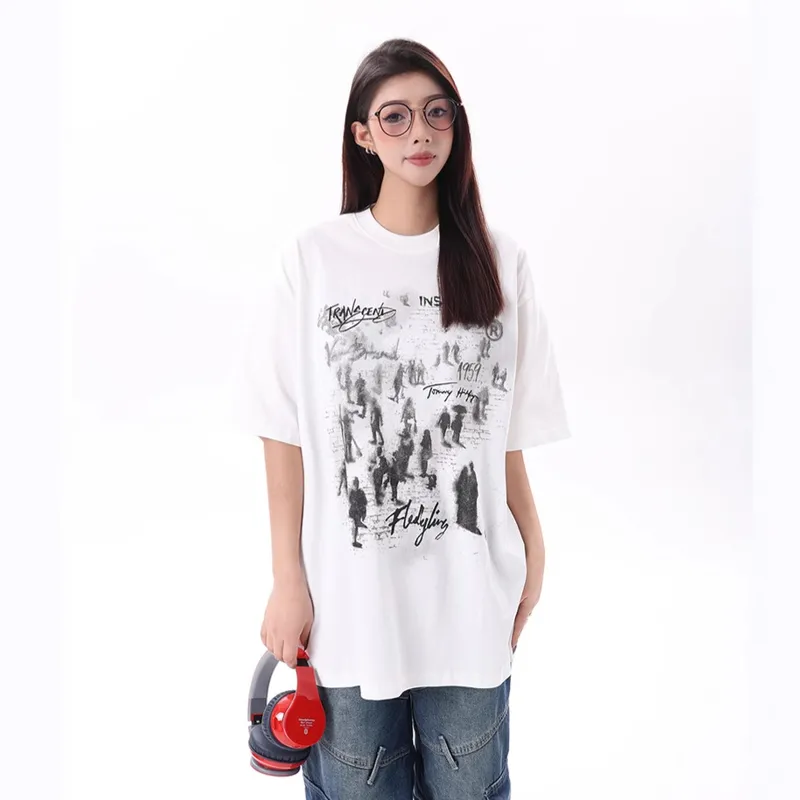 Jiayiku Men's Summer Short-Sleeved American Street Hip-Hop Trendy Brand Tee Cultural Shirt Dark Printed T-Shirt For Men