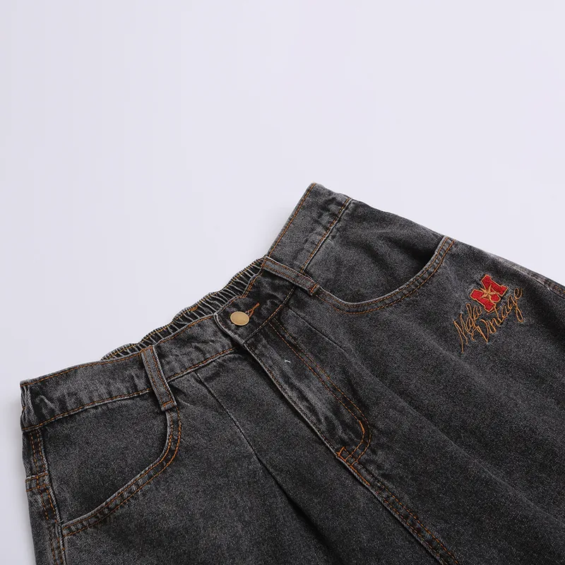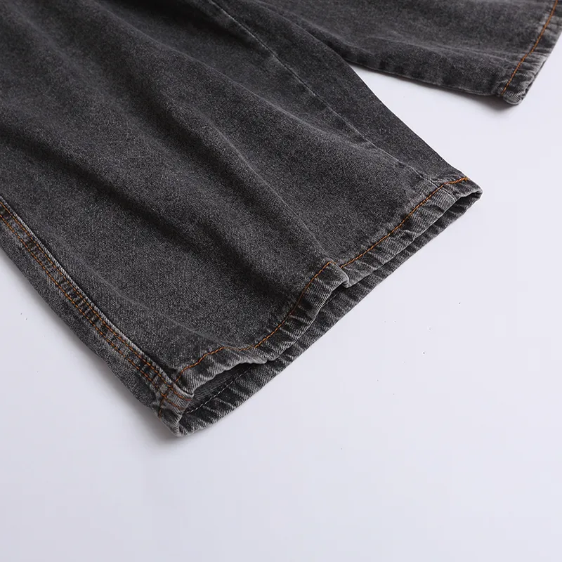 Wholesale Jiayiku New Denim Mid-Pants Men's American Fashion Brand Washed Denim Shorts Loose Embroidered Five-Quarter Pants Men