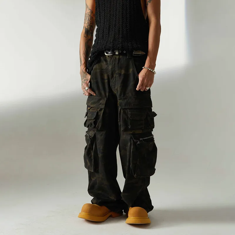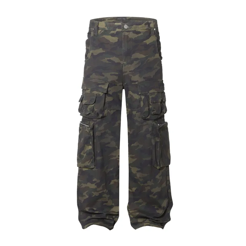 Jiayiku Tide Brand Autumn And Winter New Waste Earth Style High Street American Camouflage Workwear Wide Leg Pants Men And Women RO Pants