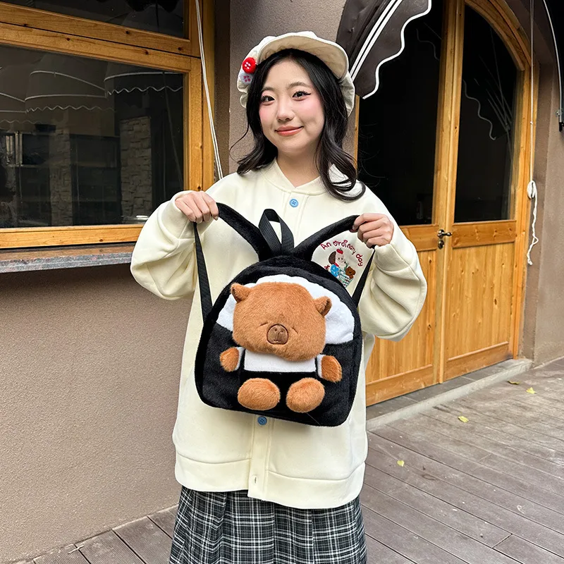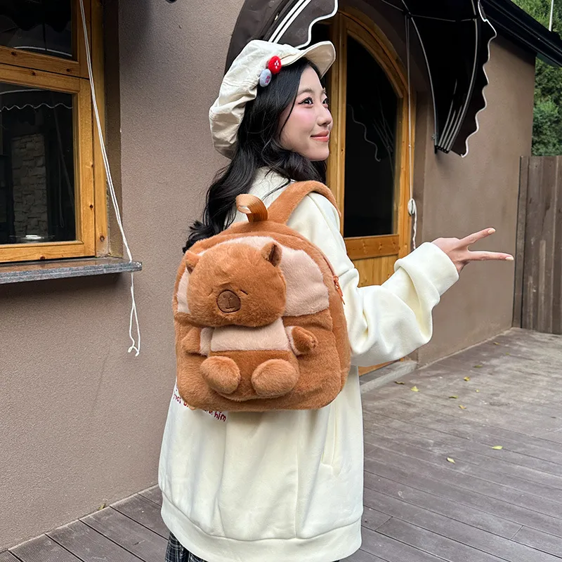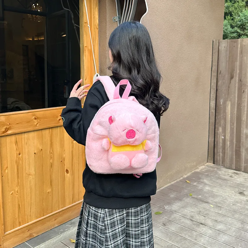 Kid'S Plush Animal Cartoon Cute Sewing Thread Oval Zipper Functional Backpack