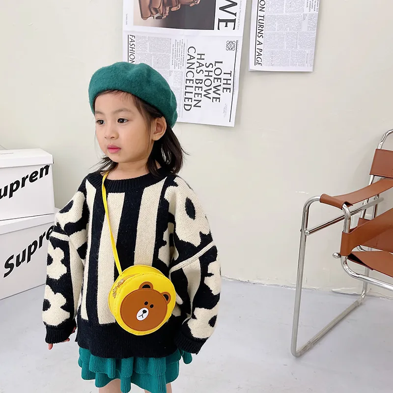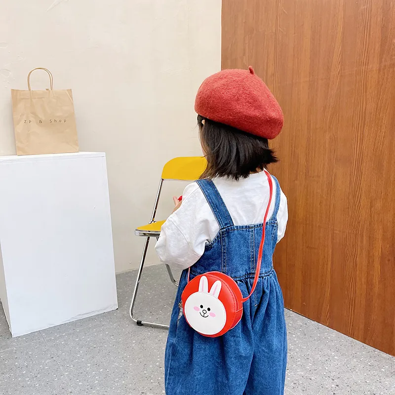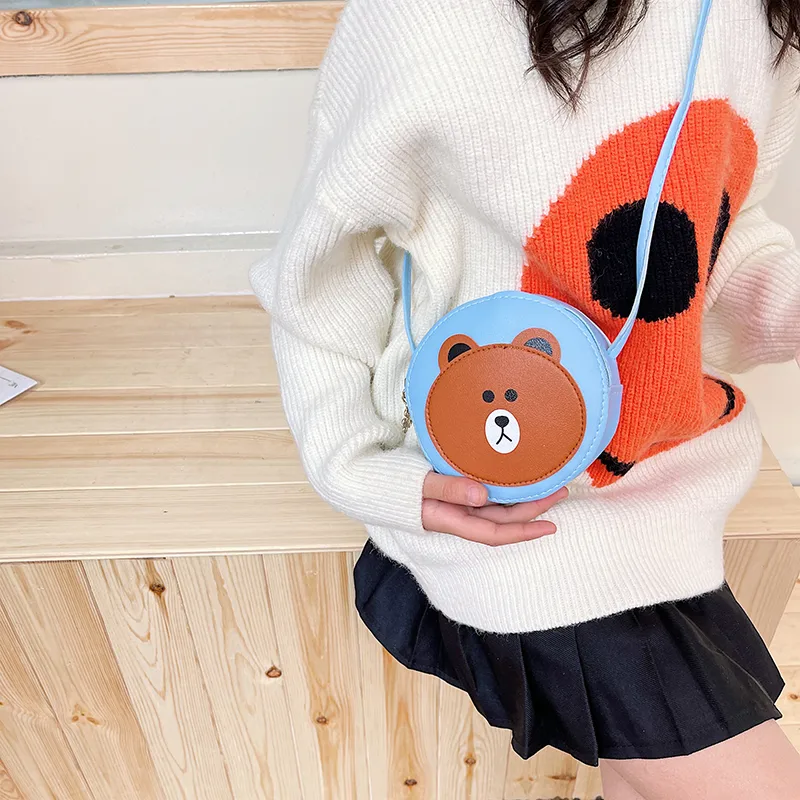 Wholesale Kid'S Pu Leather Cartoon Bear Cute Round Zipper Crossbody Bag