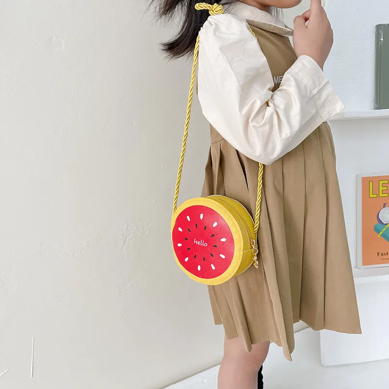 Wholesale Kid'S Pu Leather Fruit Cute Round Zipper Shoulder Bag
