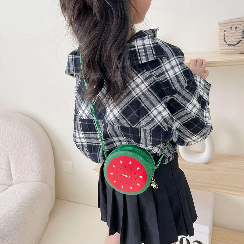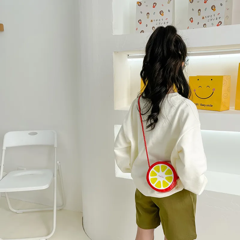 Kid'S Pu Leather Fruit Cute Round Zipper Shoulder Bag