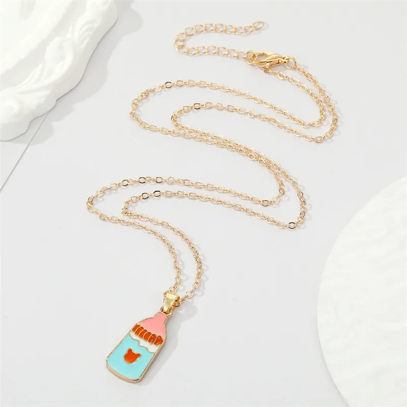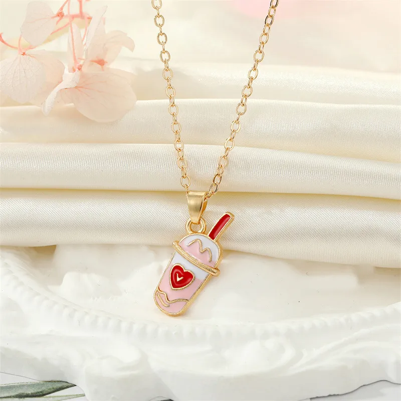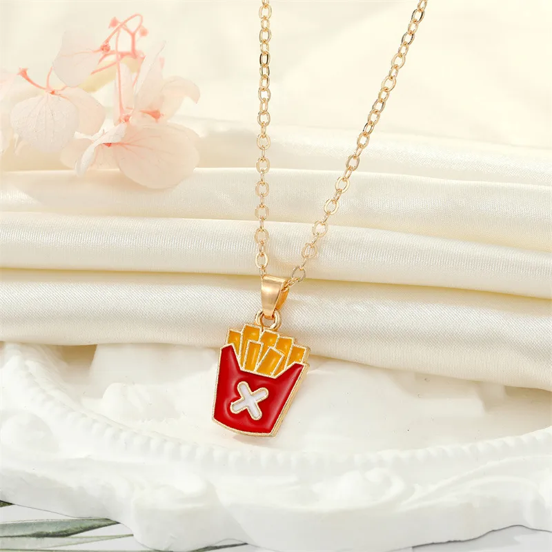 Korean Creative Personality Alloy Dripping Oil French Fries Pizza Food Pendant Necklace