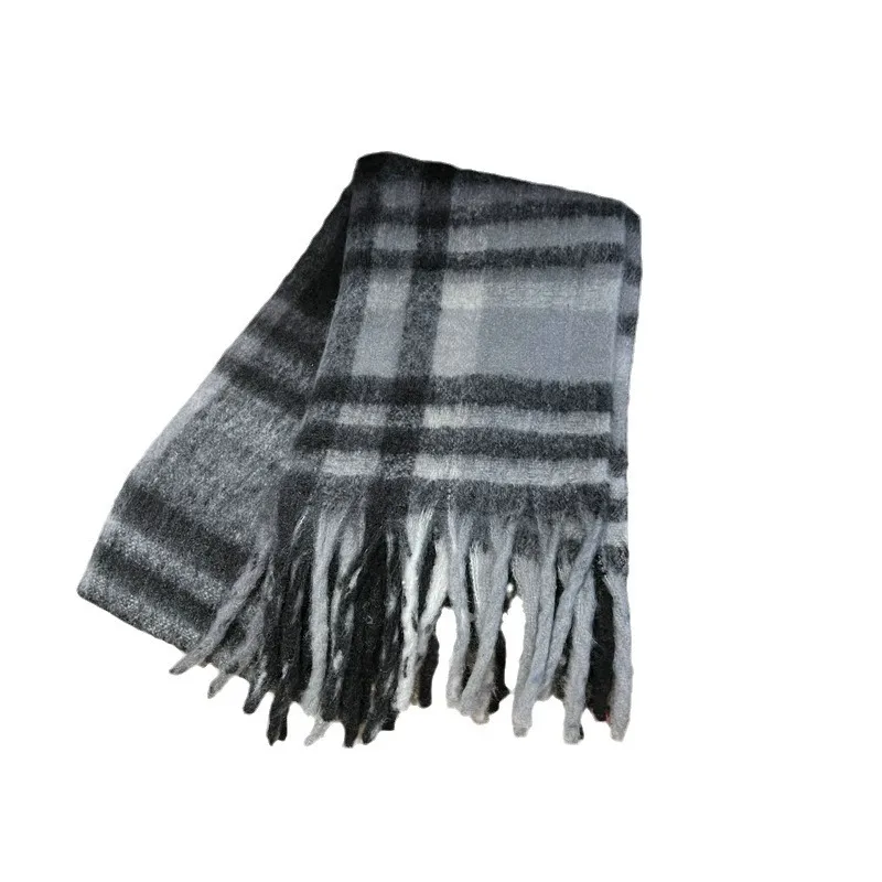 Wholesale Korean Style Plaid Tassel Mohair Scarf Women's Spring Japanese Students Travel Fashionable Sticker Casual Scarf