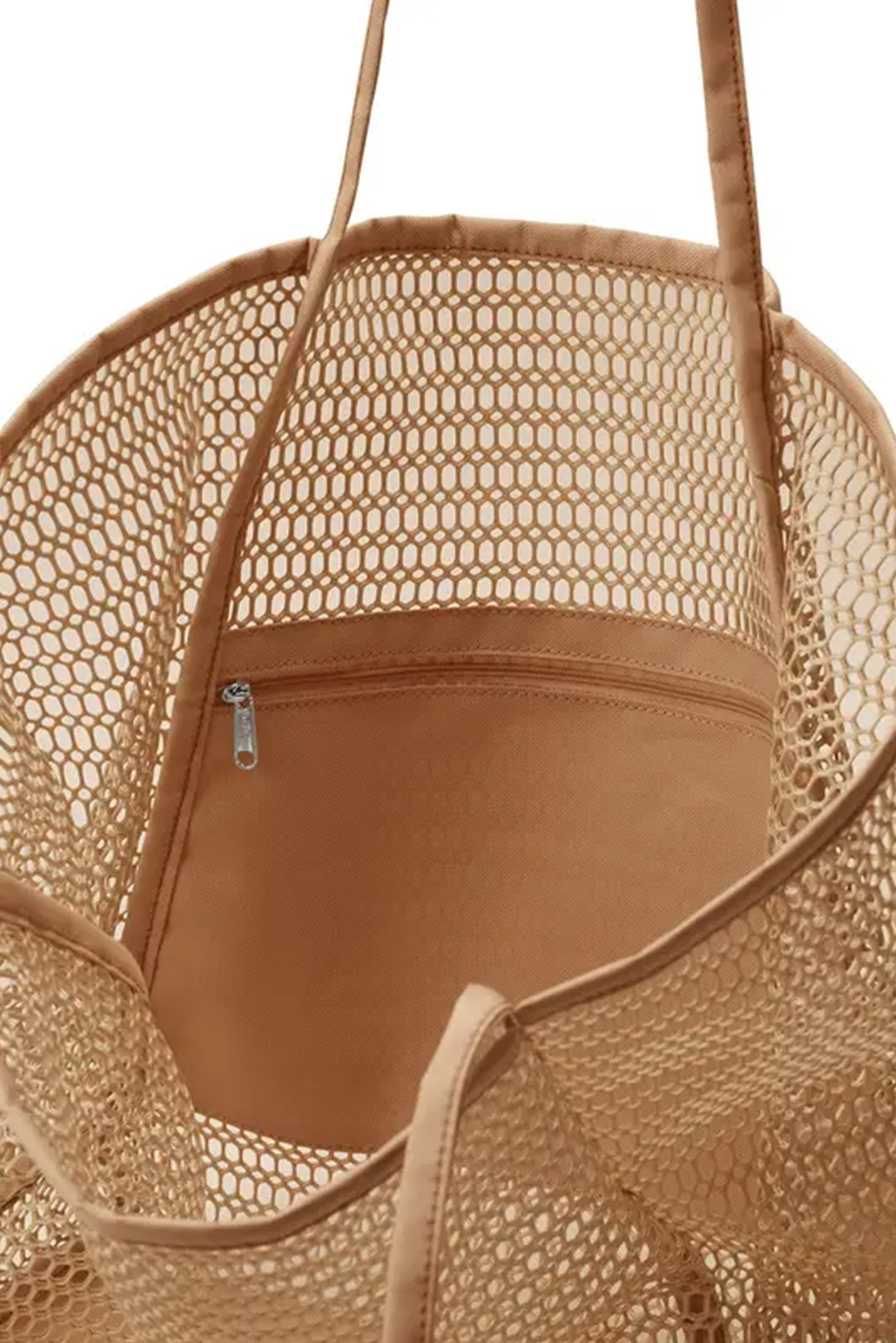 Light French Beige Hollowed Zipped Interior Pocket Nylon Tote Bag