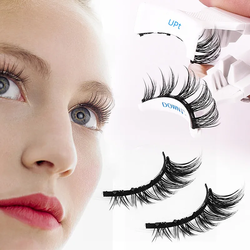 Wholesale magnetic false eyelashes magnet eyelashes glue-free thick one-piece magnet eyelashes two pairs suit
