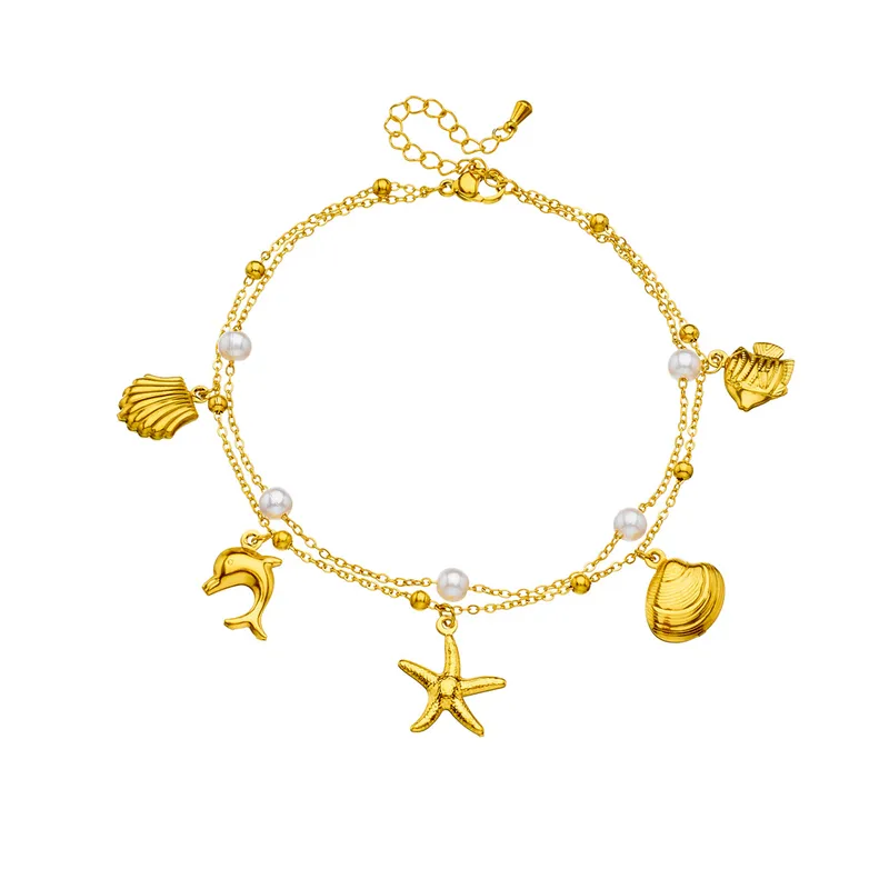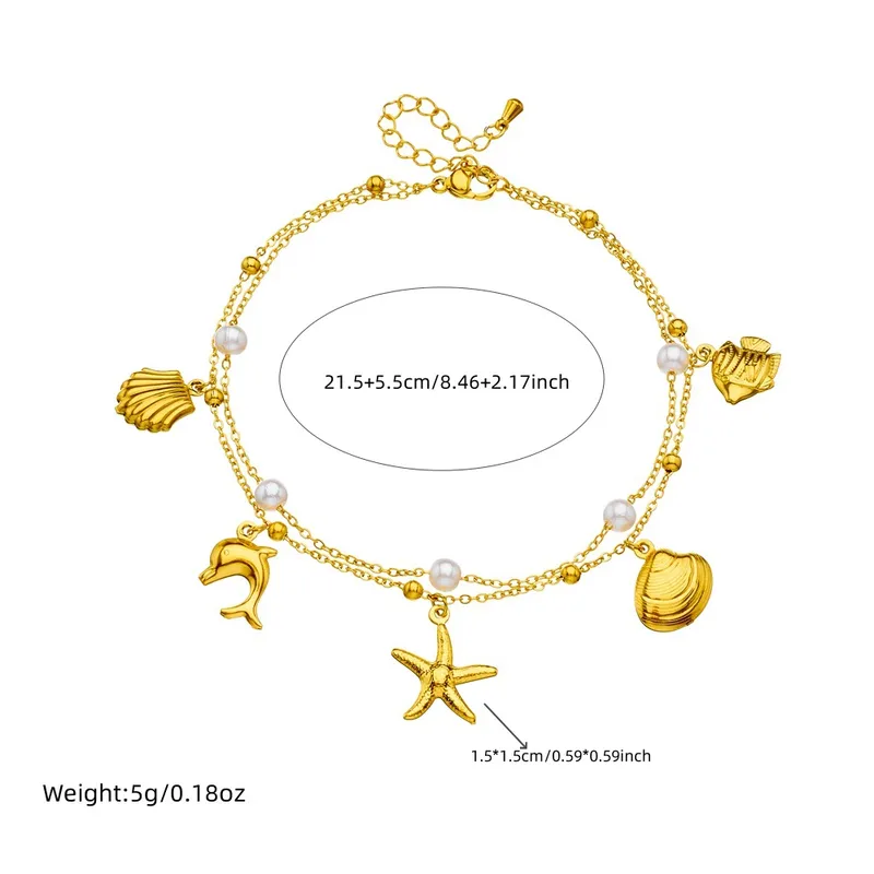 Marine Style Beach Starfish Dolphin Shell 304 Stainless Steel Women's Anklet