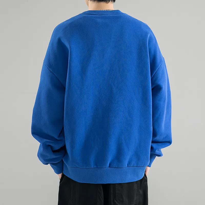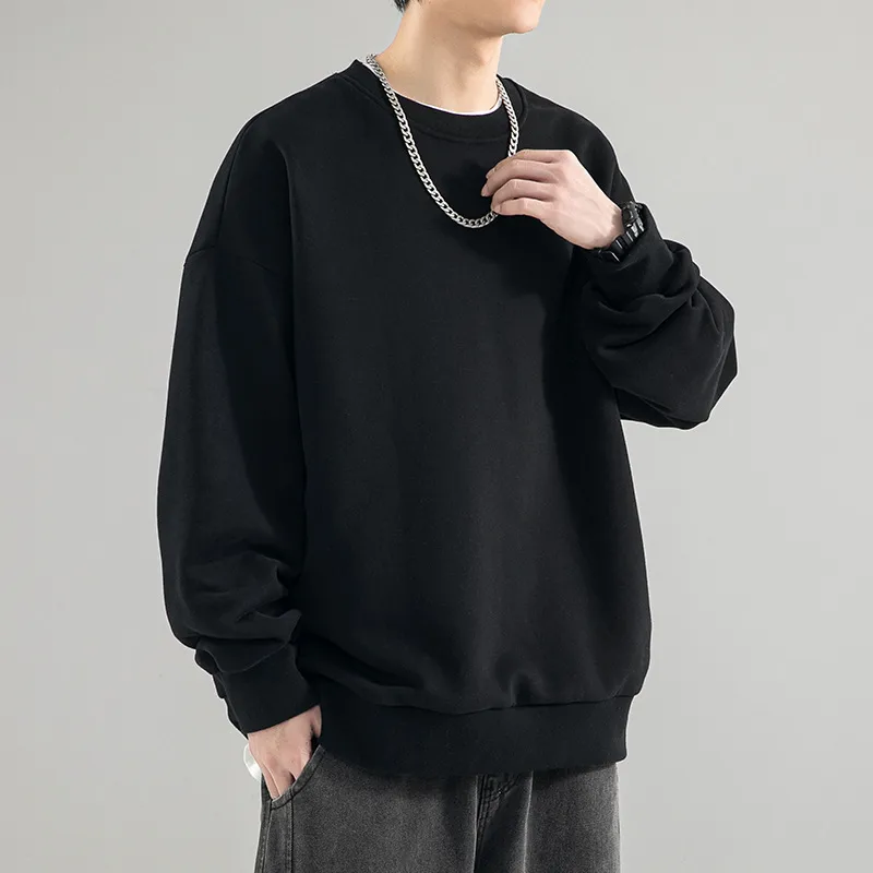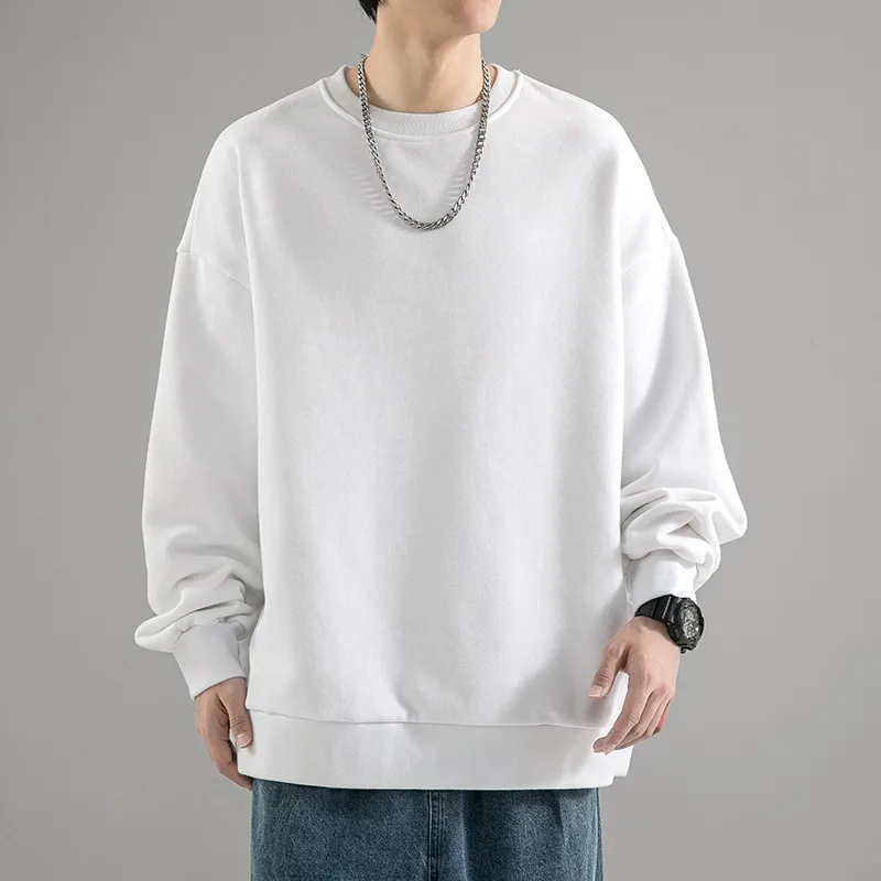 Wholesale Men's 480g Heavyweight Crew Neck Sweatshirt - Autumn Casual Streetwear with Fleece Lining