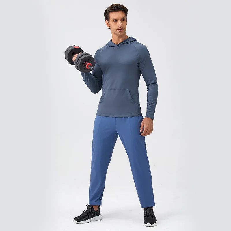 Men's Autumn And Winter Sports Sweater Hooded Moisture Absorption Quick-Drying Workout Clothes Top Slim Fit Running Training Long Sleeve 31518
