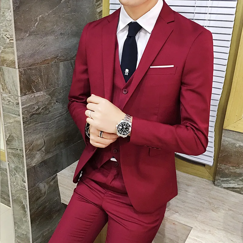 Wholesale Men's Casual 3 - Piece Suit Blazer Set - Wedding Groom Formal Attire
