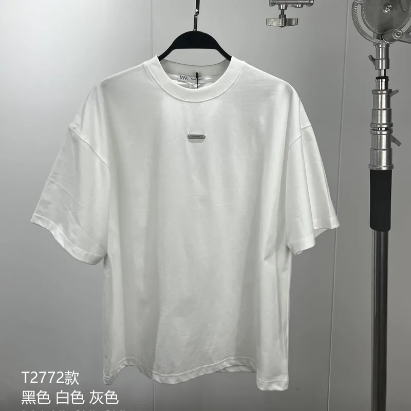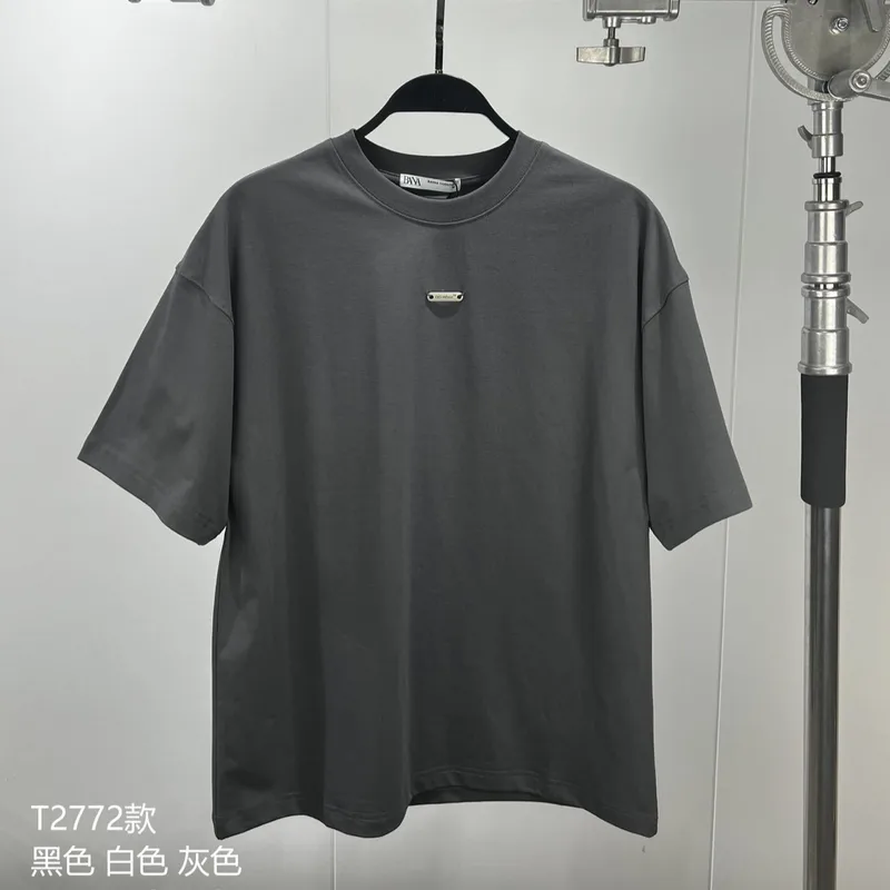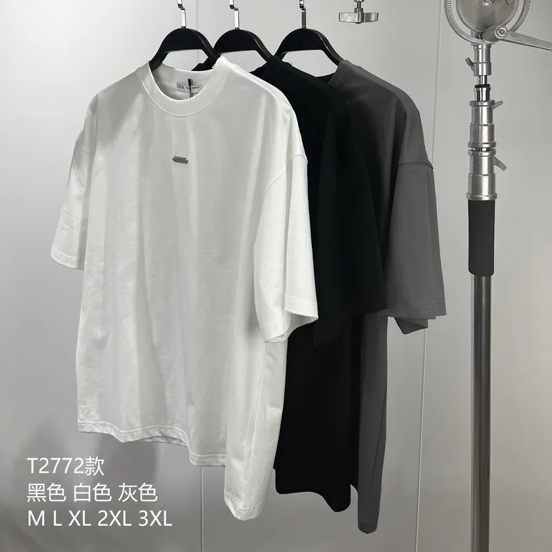 Wholesale Men's Cotton Heavy High Street Simple All-Matching Short-Sleeved T-shirt Men's Trendy Printed Solid Color Bottoming Shirt Top