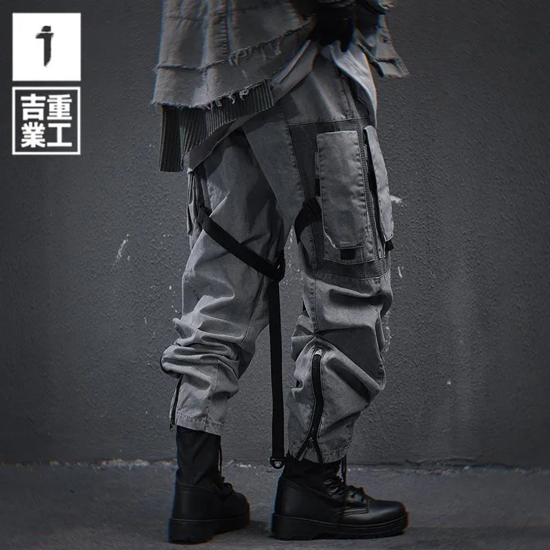 Wholesale Men's Daily Pioneer Design Solid Color Cargo Pants Full Length Casual Pants