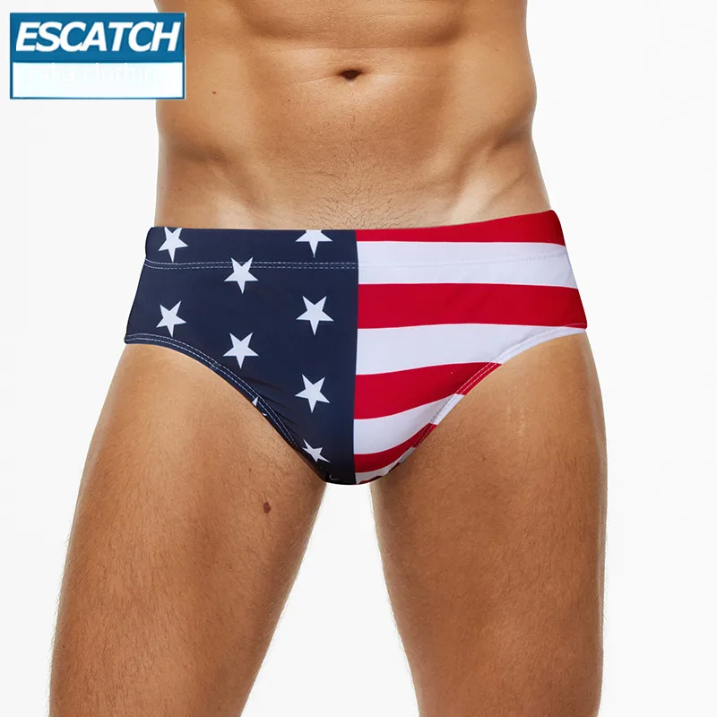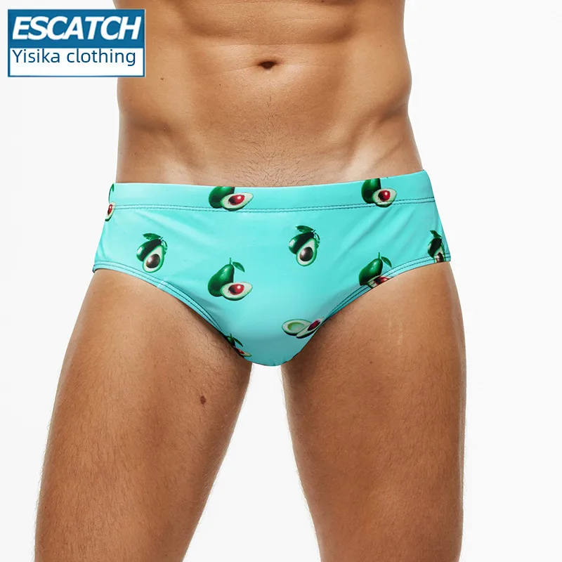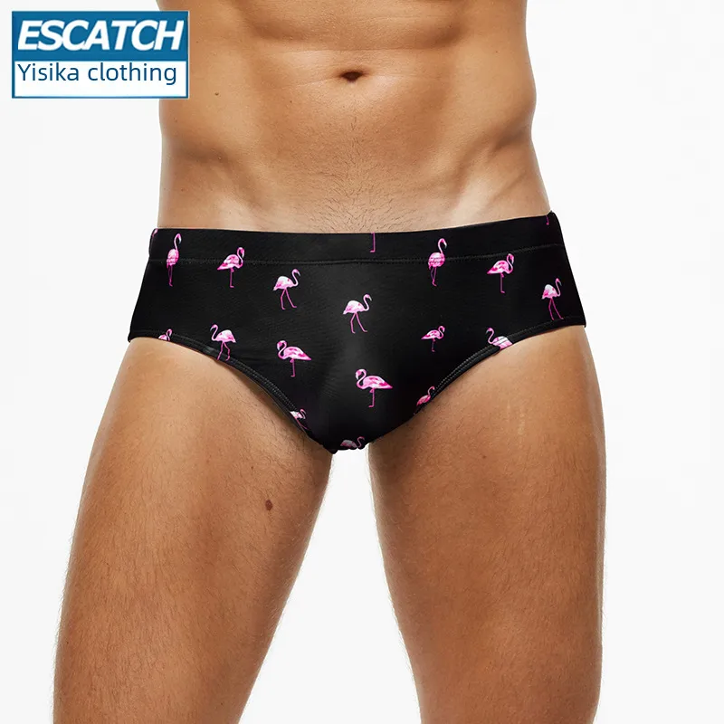 Men's Foreign Trade Triangle Swimming Trunks Printed Stitching Anti-embarrassment Swimming Hot Spring Shorts Sexy Low Waist