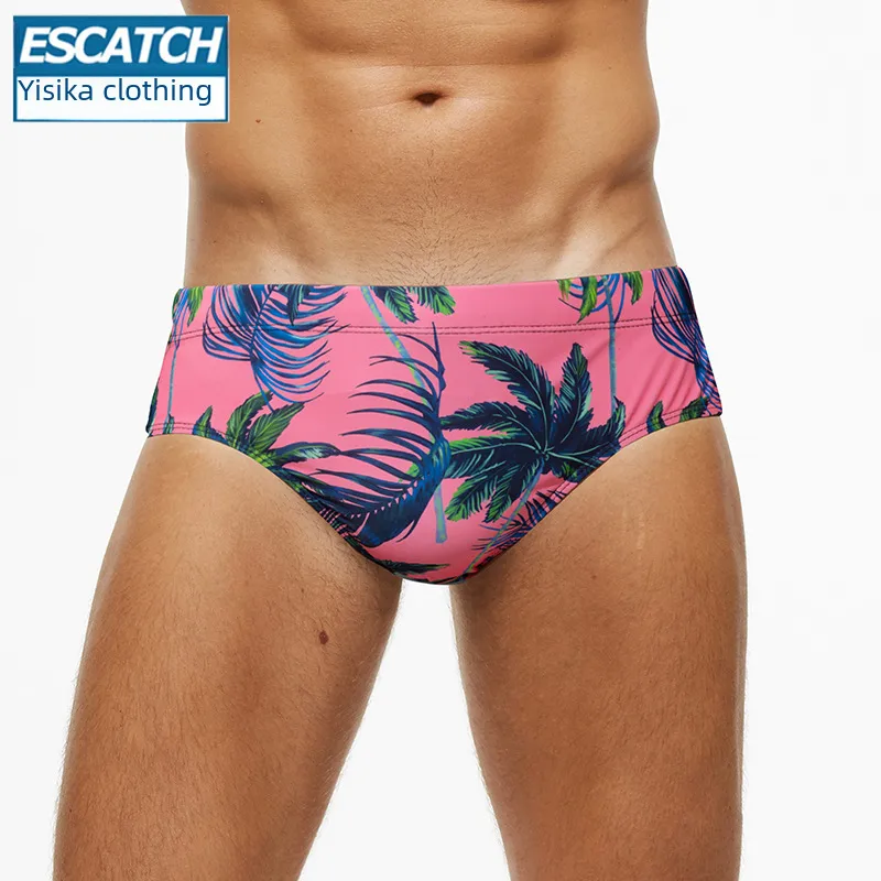 Wholesale Men's foreign trade triangle swimming trunks printed stitching anti-embarrassment swimming hot spring shorts sexy low waist