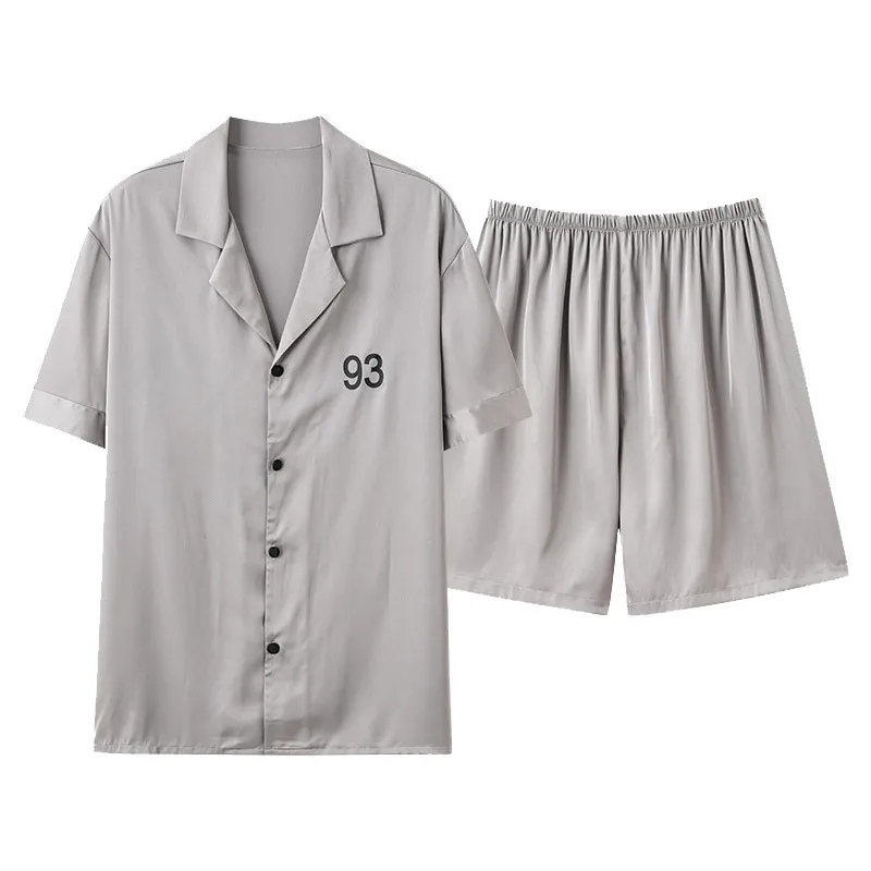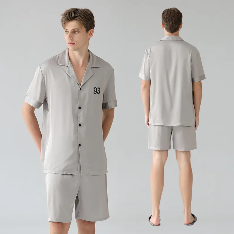 Wholesale Men's Ice Silk Pajama Set - Lightweight Summer Short Sleeve Lounge Set