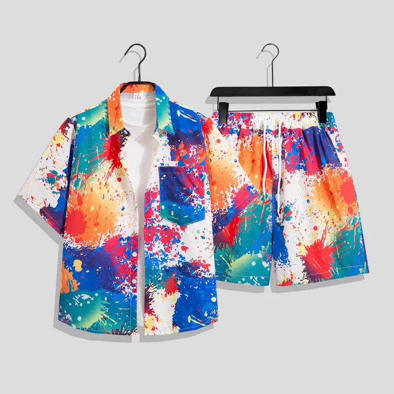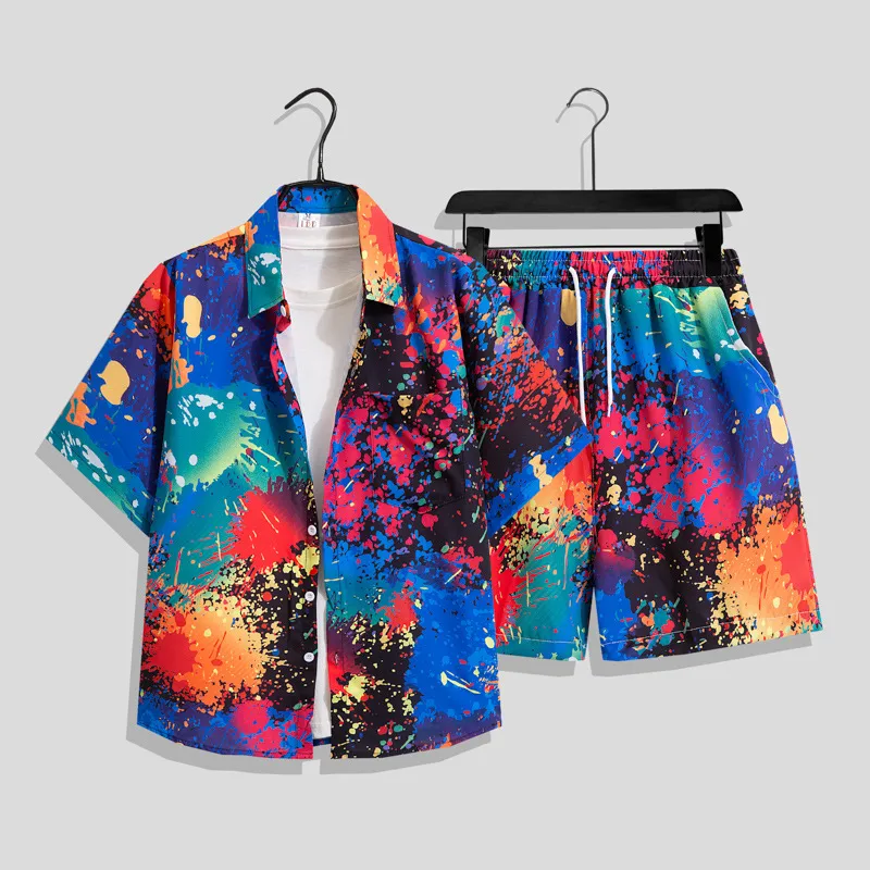 Men's Quick-Dry Floral Hawaiian Shirt & Shorts Set - Summer Beach Casual Loose Fit Two-Piece Outfit