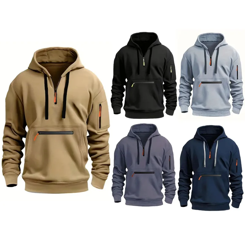 Wholesale Men's Waterproof Zip Hooded Sweatshirt with Multiple Pockets