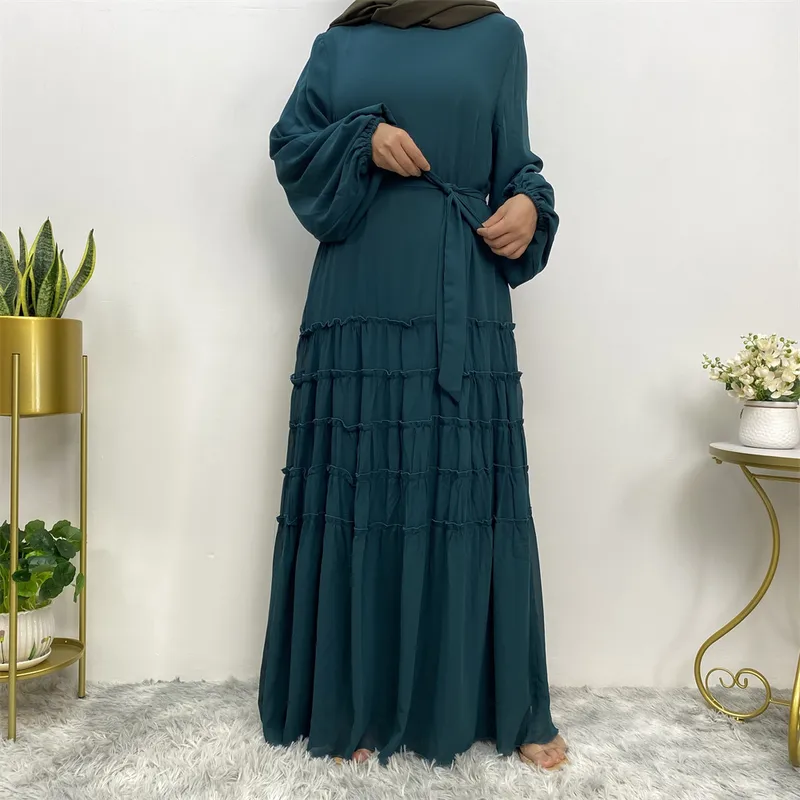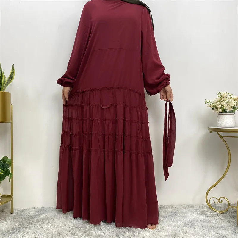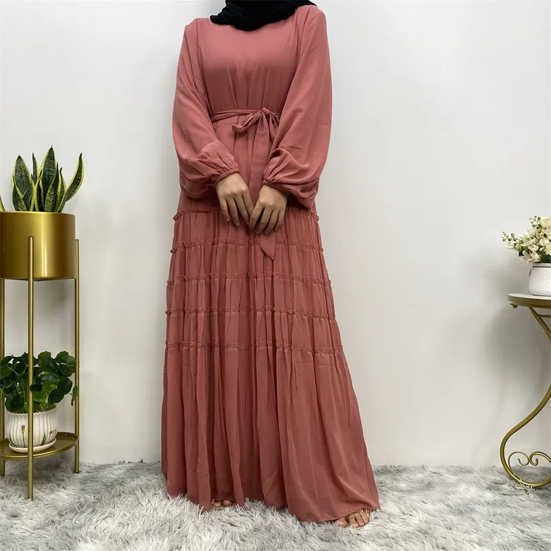 Wholesale Middle East Fashion Double Chiffon Clear Color Large Hem Loose Robe Islamic Dress 6527
