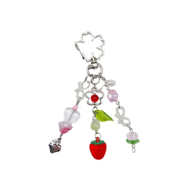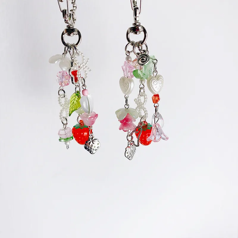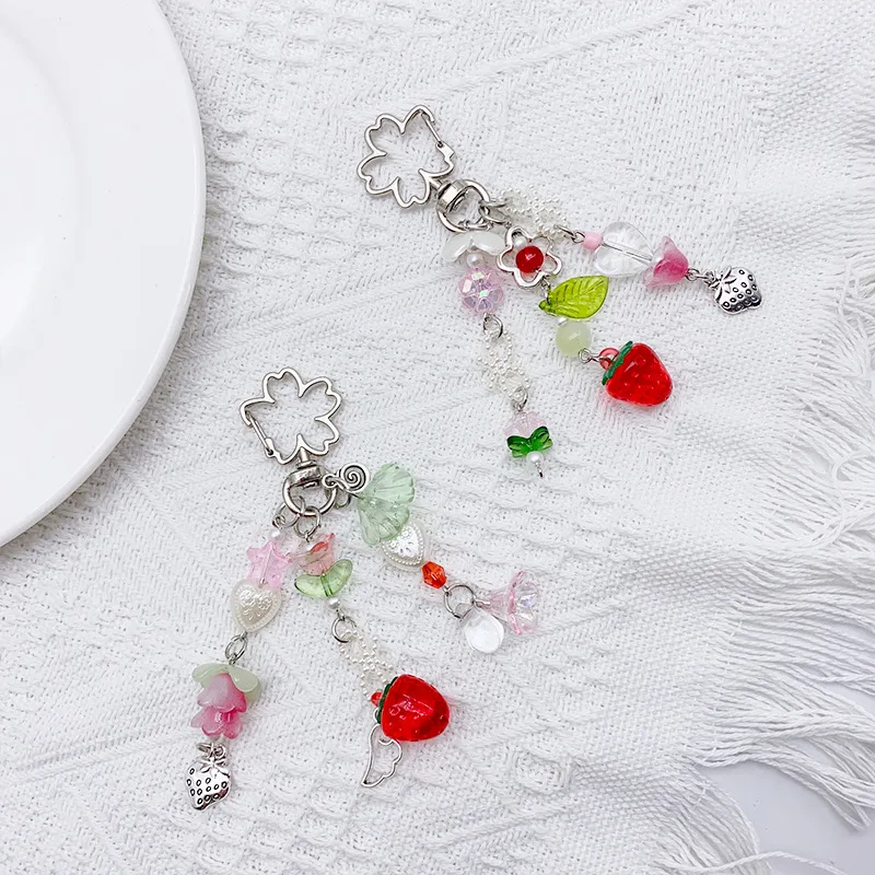 Mobile Phone Case Accessories Small Fresh Tulip Strawberry Pendant Love Handmade Beaded Cherry Blossom Keychain Bag