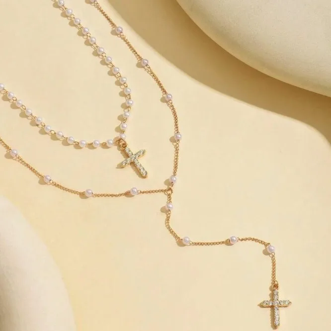 Wholesale Modern Style Classic Style Cross Heart Shape Eye Alloy Women's Layered Necklaces