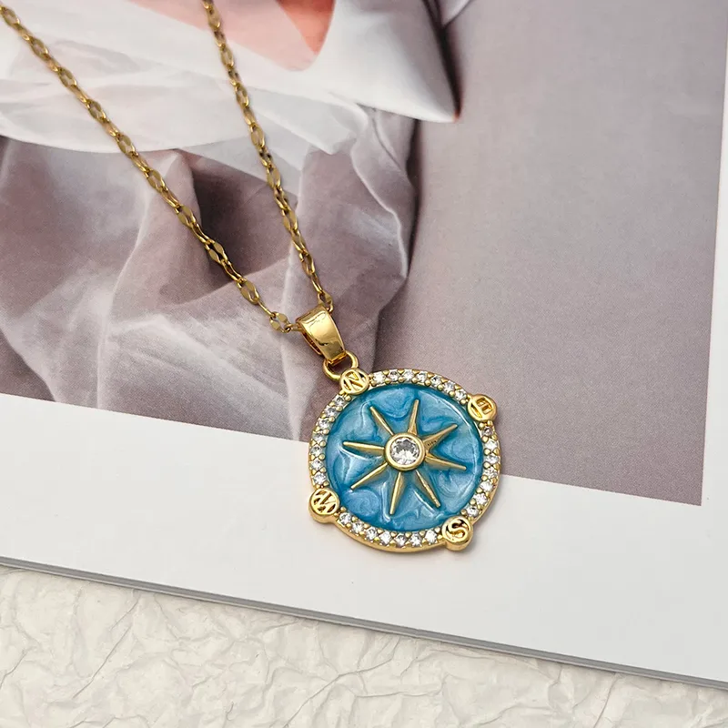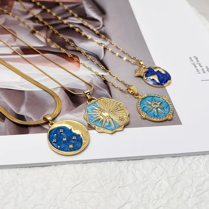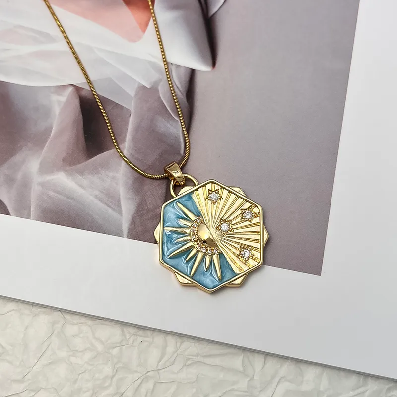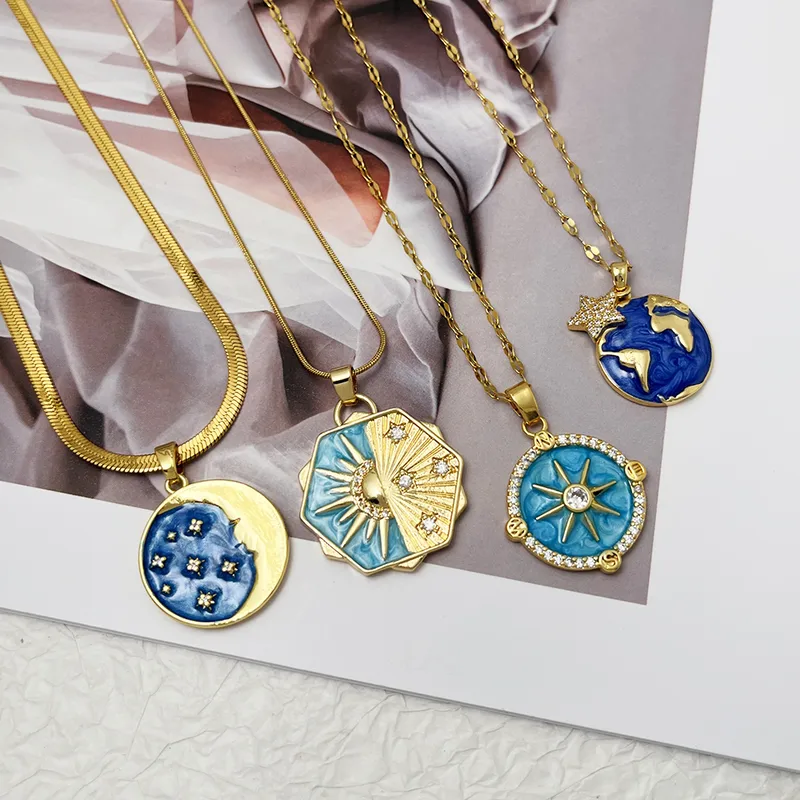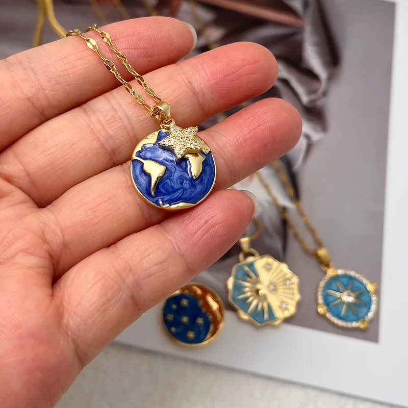 Wholesale Modern Style Earth Sun Moon 304 Stainless Steel Zircon 18K Gold Plated Women's Pendant Necklace