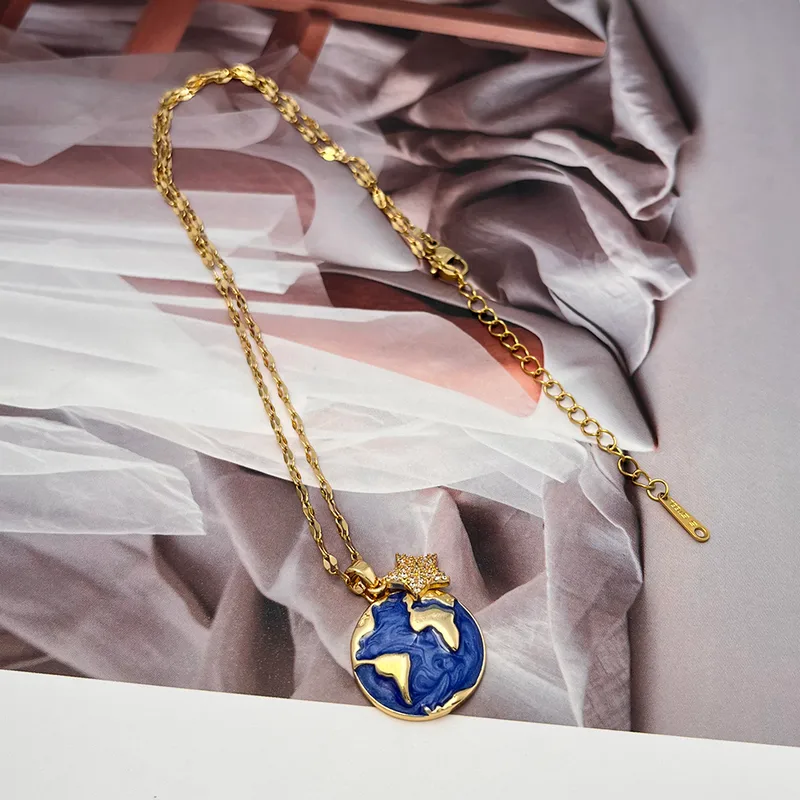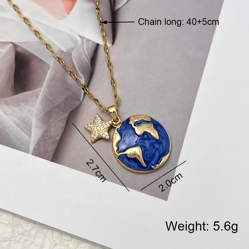 Modern Style Earth Sun Moon 304 Stainless Steel Zircon 18K Gold Plated Women's Pendant Necklace