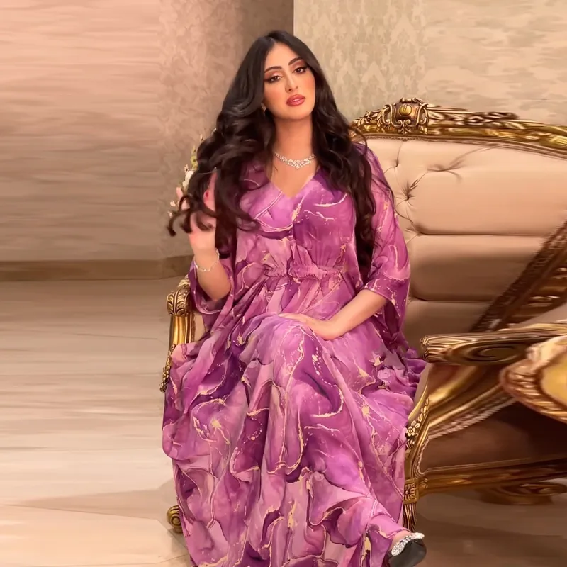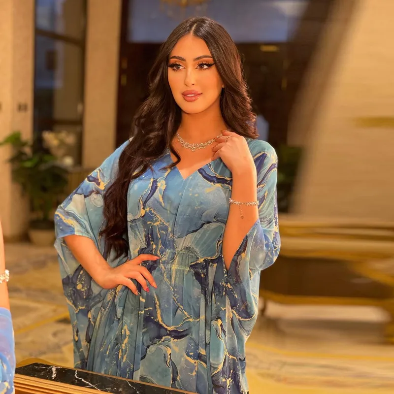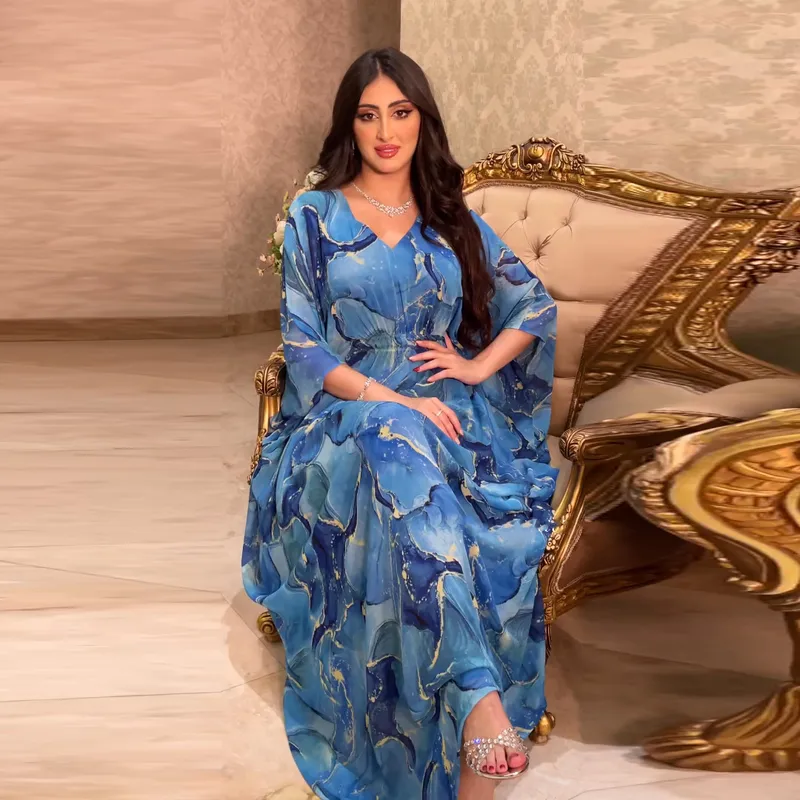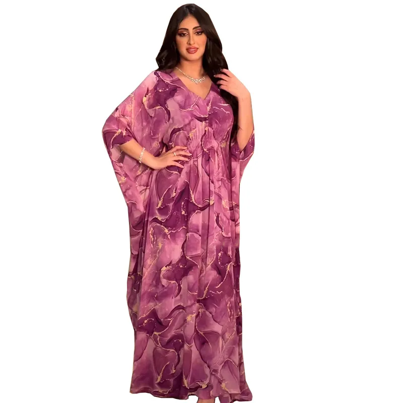 Wholesale MQ069 Women's Plus Size Chiffon Print Abaya Dress with Batwing Sleeves