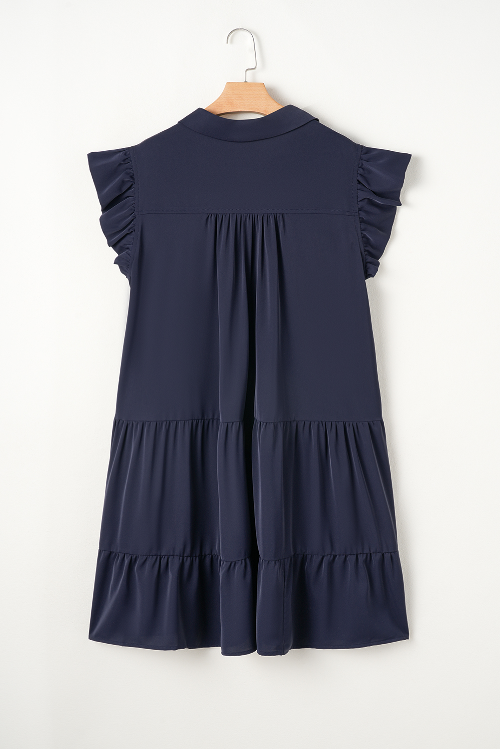 Navy Blue Collared V Neck Flutter Sleeve Tiered Plus Size Dress