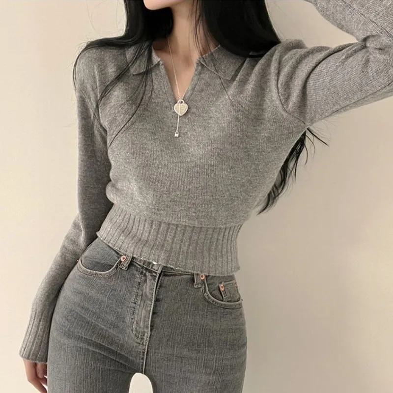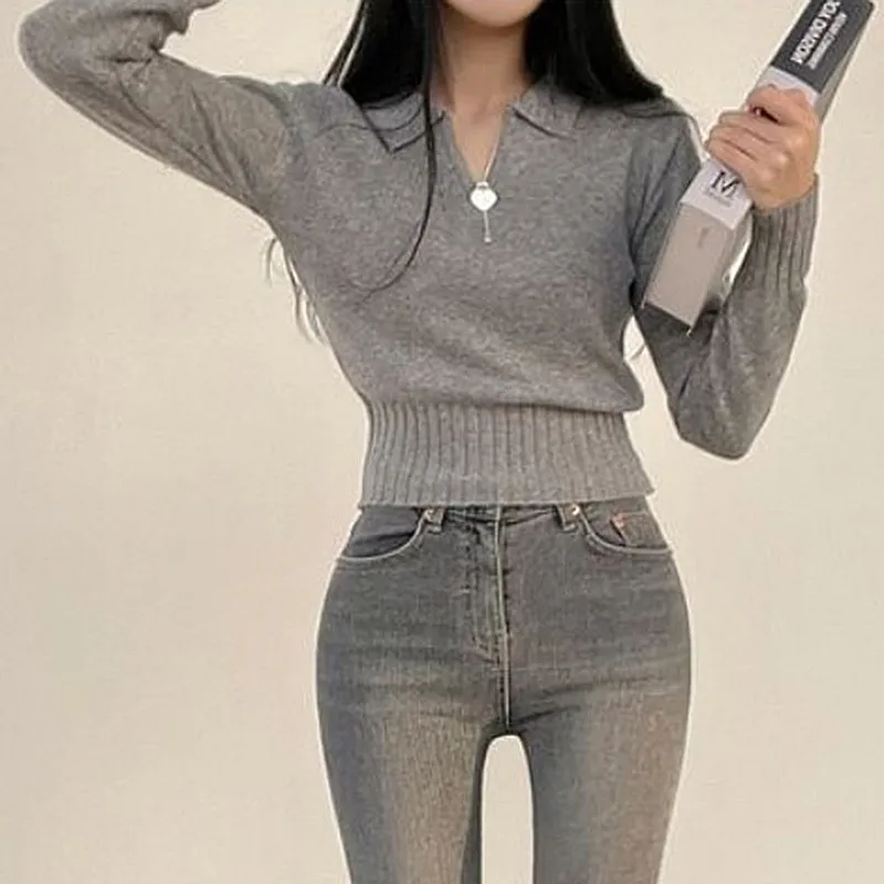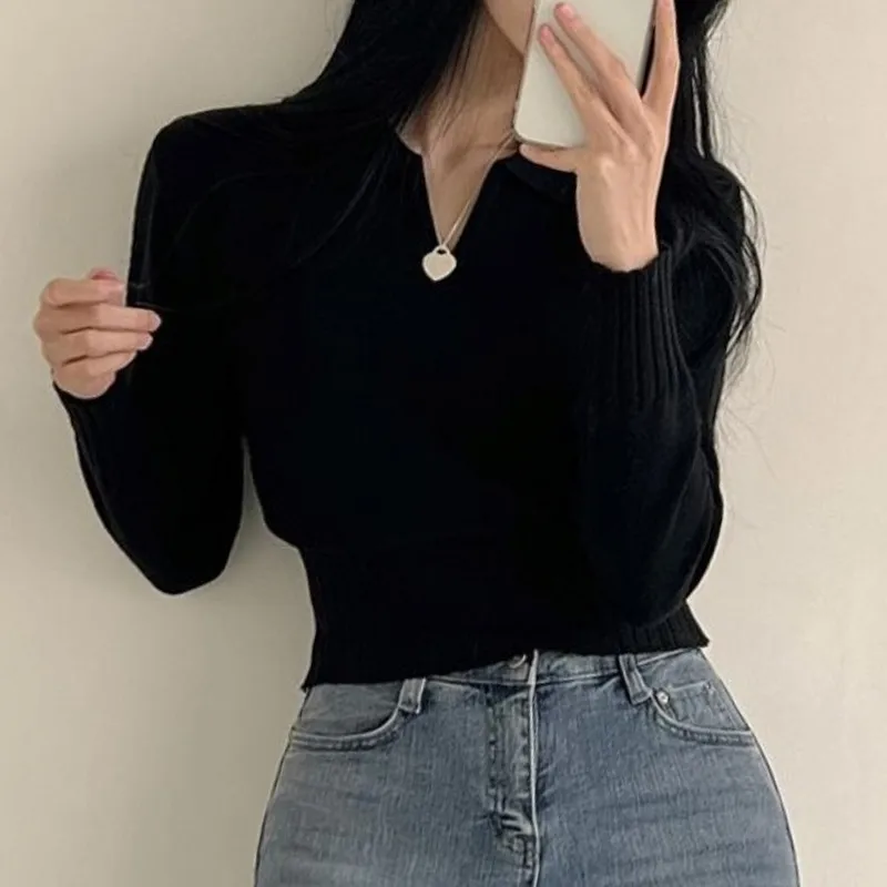 Neutral-style Simple Slim-fit Slim-fit Sweater New Arrival Women's V-neck Commuter All-match Base Top
