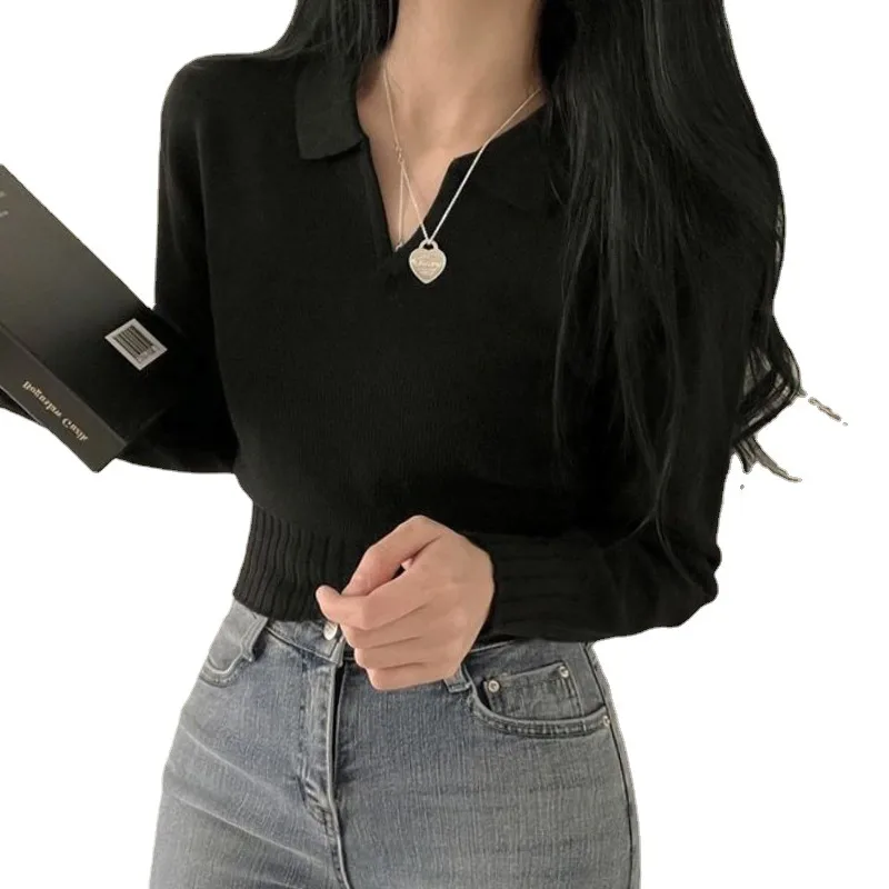 Wholesale Neutral-style Simple Slim-fit Slim-fit Sweater New Arrival Women's V-neck Commuter All-match Base Top