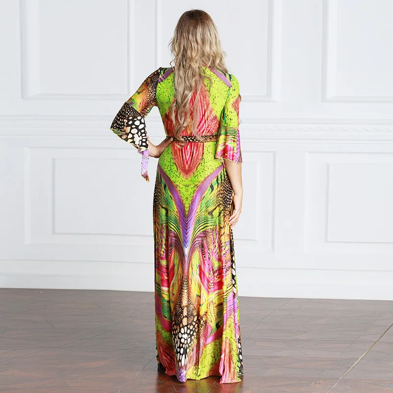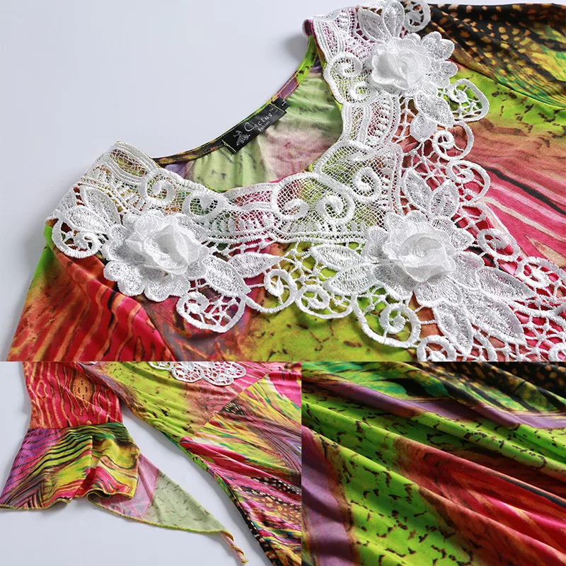 New Arrival Fashion Women's Embroidered Round Neck Mid-Sleeve Loose Fit Maxi Dress 5071