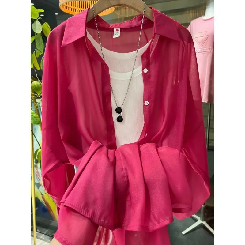 Wholesale New Arrival Fashionable All-match Top Pearlescent Yarn Sun-protection Clothing Women's Loose Lantern Sleeve Shirt High-grade Mid-length