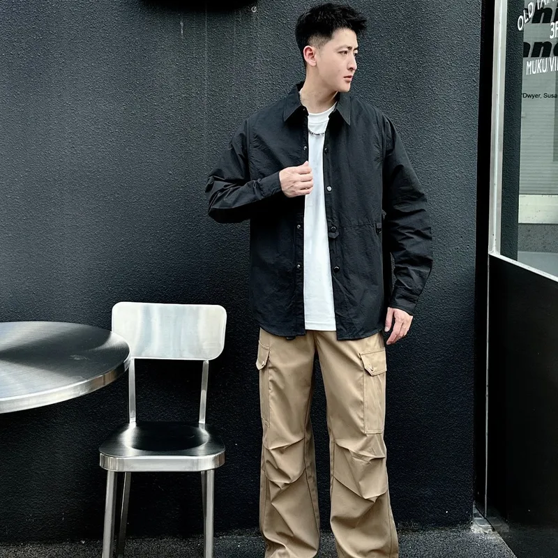 Wholesale New Arrival Shirt Men's Long Sleeve Spring and Autumn New Style Workwear Pu Shuai Shirt Coat Loose Casual Top