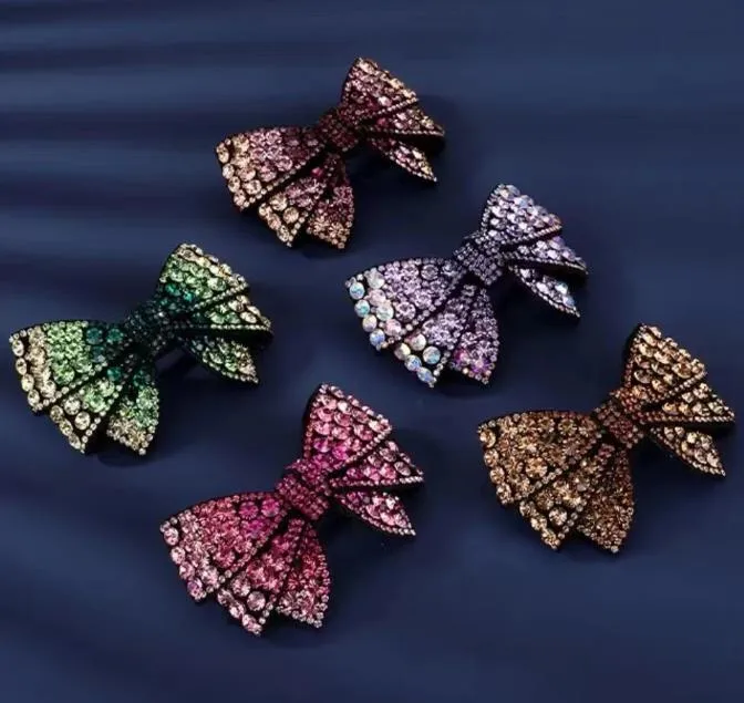 New Bow Rhinestone Hairpin Adult Hair Updo Headdress Barrettes Head Clip Clip Spring Clip Ponytail Back Brain Horizontal Clip