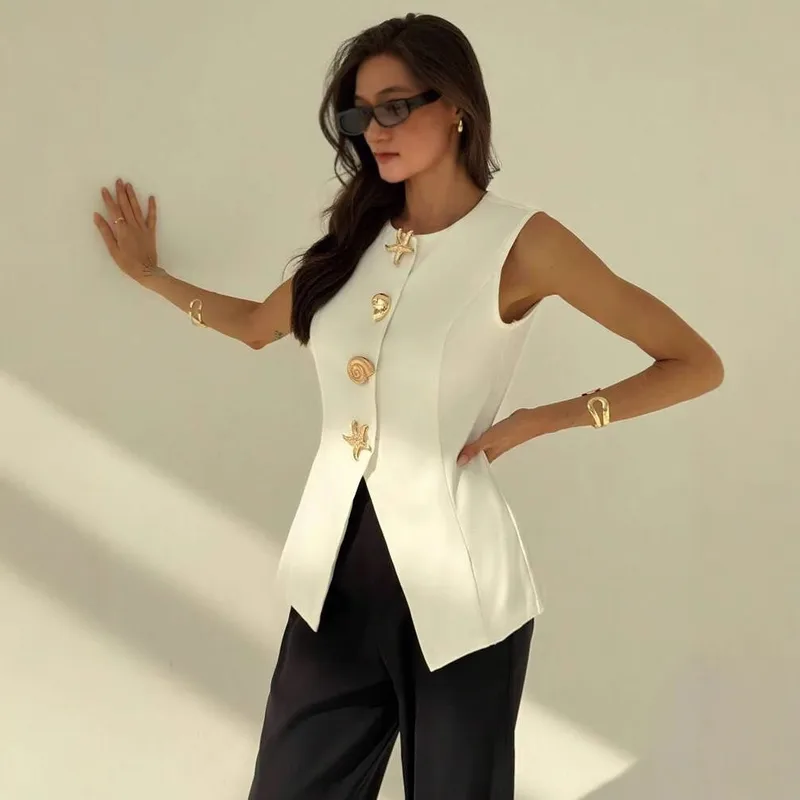 Wholesale New British Artistic Elegant V Neck Vest New Loose and Versatile Waist Top for Women