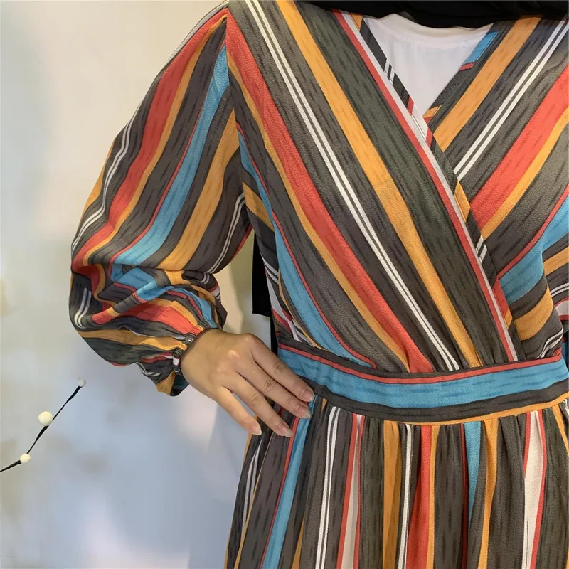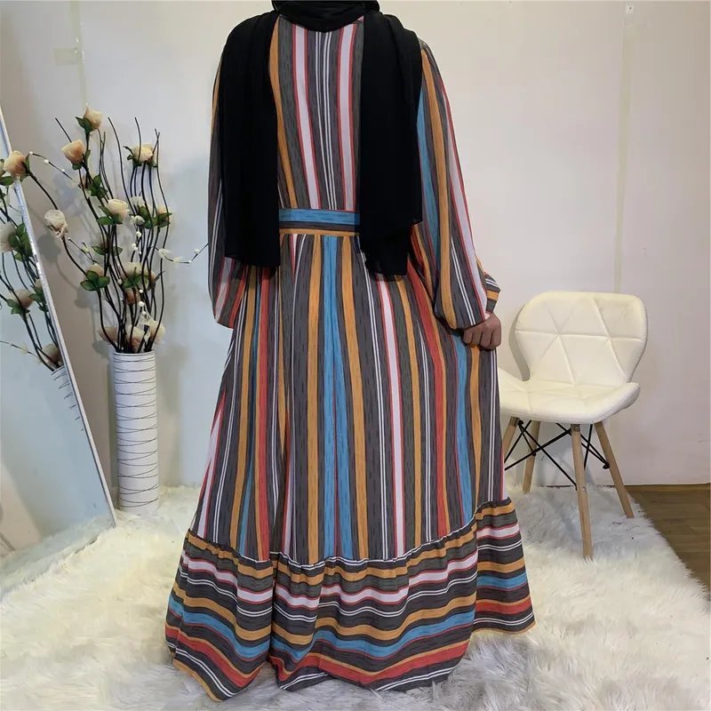 Wholesale New Colorful Striped Floral Print Abaya Dress