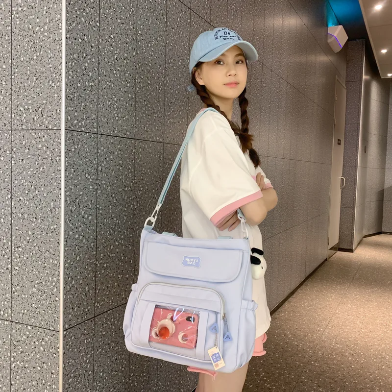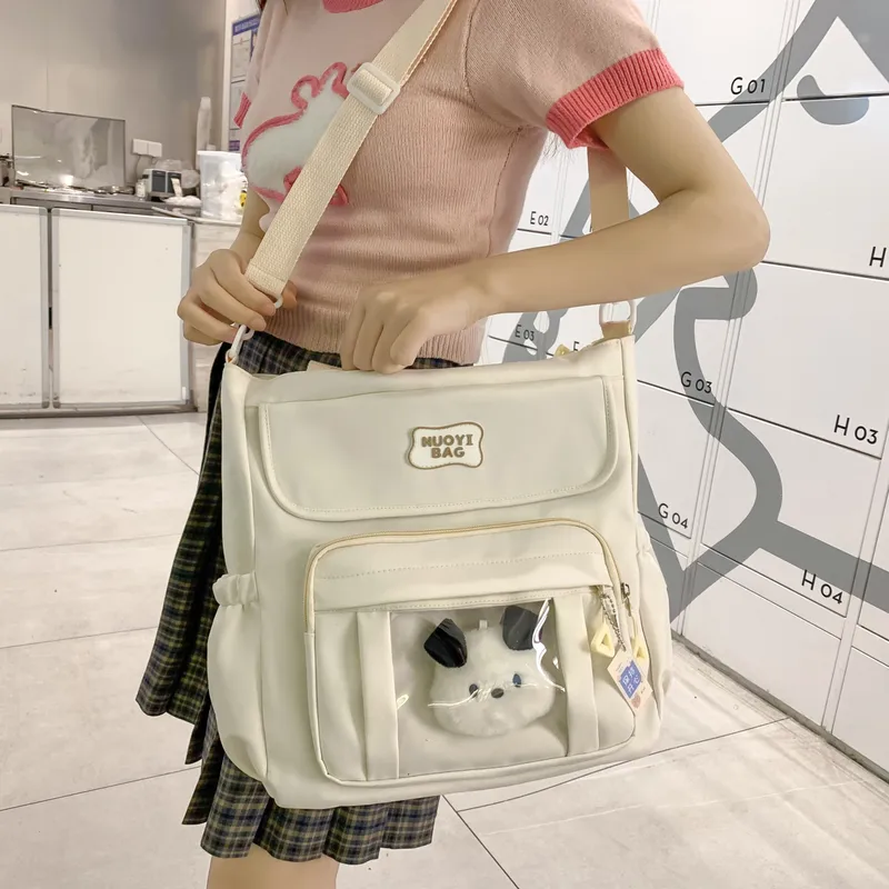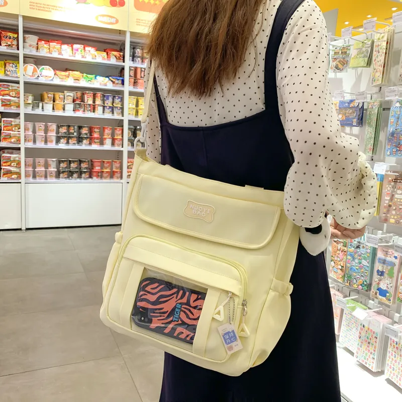 New Ins Girl Preppy Style Canvas Messenger Bag Small Fresh Large Capacity Female Student Class Commuter Shoulder Bag