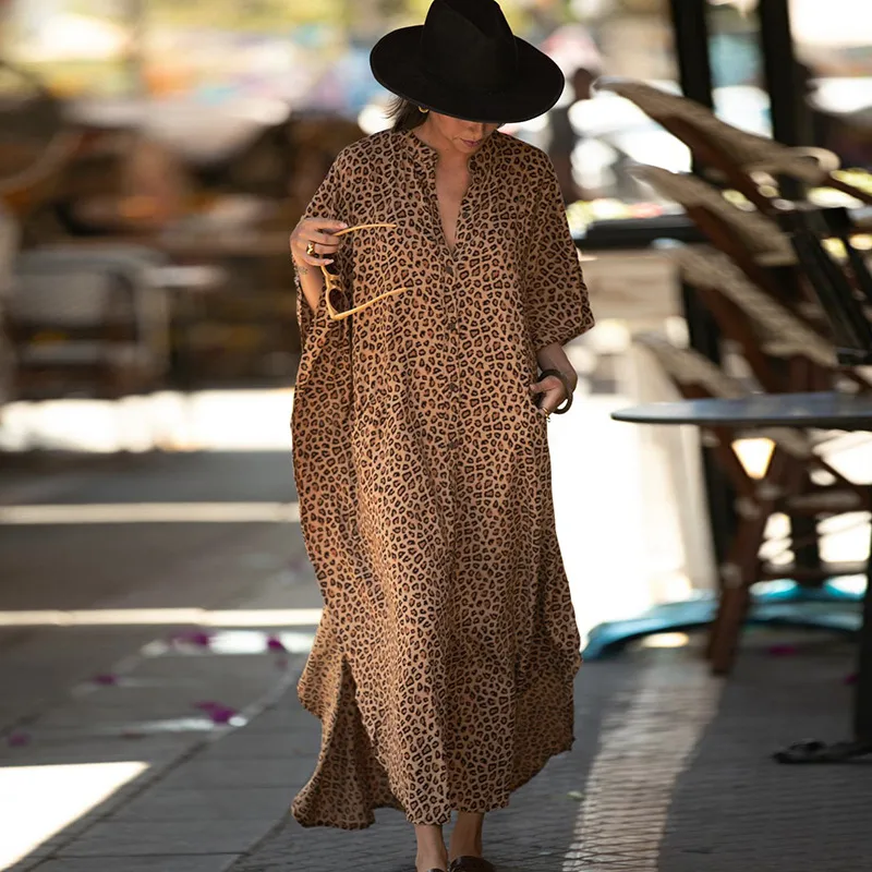 Wholesale new leopard dot cardigan vacation long skirt beach cover dress wholesale nihaowholesale
