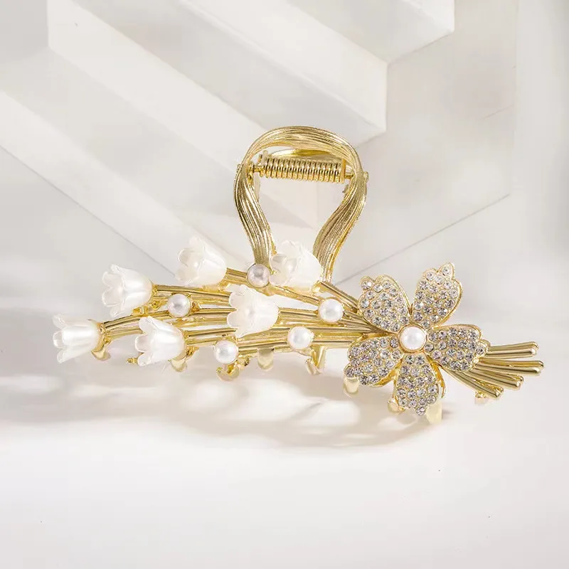 Wholesale New Light Luxury Lily Tassel Large Grip Shark Clip Back Head Barrettes Senior Elegant Graceful Fine Hairware
